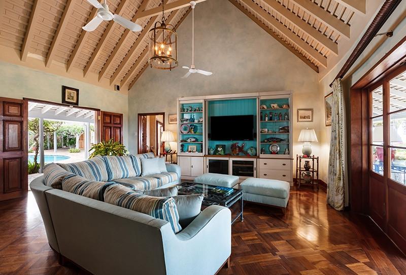 The house is superbly sited on its own hill of five and three quarter acres and set in beautiful landscaped grounds. Little Hill commands a 360 degree view of the surrounding area from an elevation of 200 feet. There are views of the Caribbean Sea, the forest and the club’s internationally acclaimed 18-hole championship golf course. There is a hard tennis court on the western side of the property with a covered area for spectators.