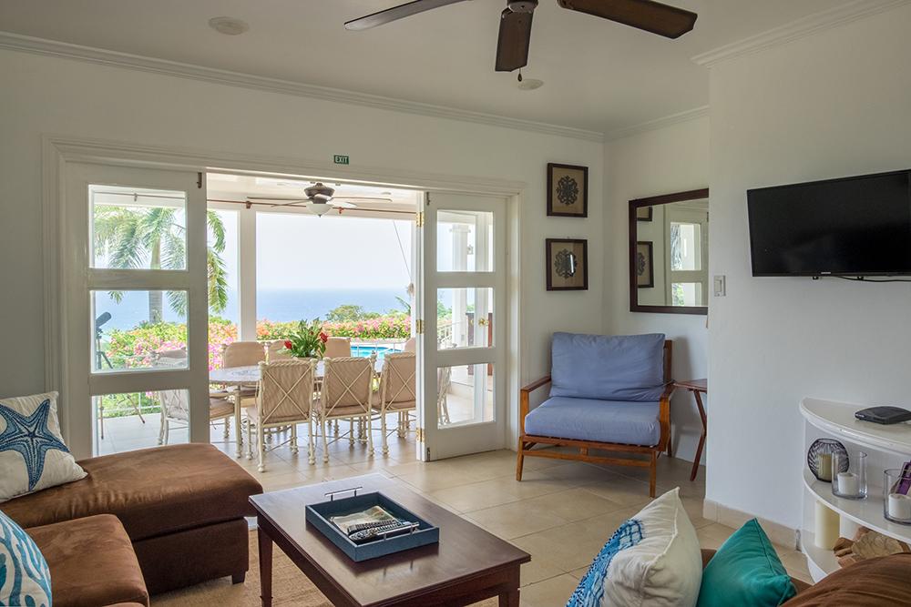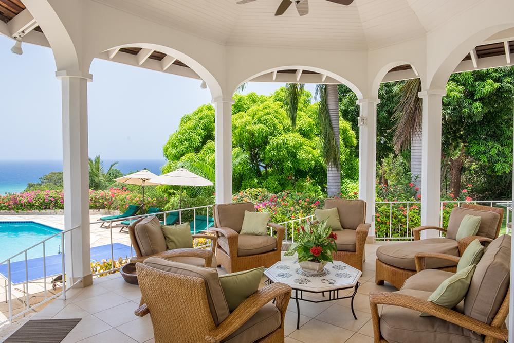 The magnificent view is immediately apparent through carved entrance doors with antique brass fittings. The view becomes more dramatic as one moves through the large living room to the shaded verandah and beyond to the private pool and large lawn. The view from Nutmeg of the deep blue Caribbean Sea is simply breathtaking.