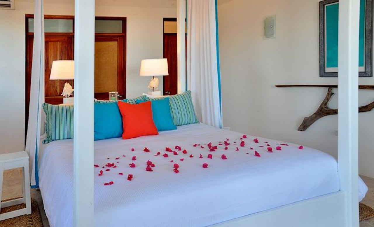 Bedroom 2: King four-poster bed, en suite bathroom with walk-in open-air shower, balcony with swing, ocean view