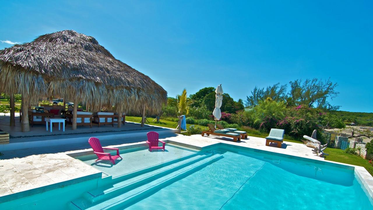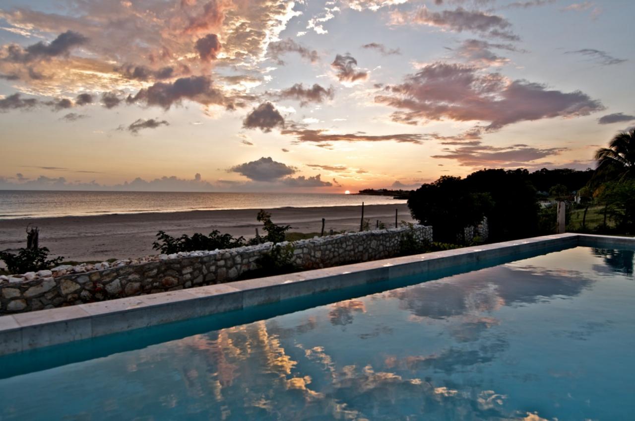 Like travelling through a time warp, to visit Jamaica's South Coast is to experience the Jamaica of 30 years ago. The pace is slow, the lifestyle uncomplicated, the people are kind and calm. An uncommon sense of bliss feels pervasive on this part of the Island. Out of the Blue is an oxymoron: a contemporary home in Old Jamaica. And what a home it is! The villa sits on the longest uninterrupted expanse of sea view at beach level of any other beach property in this group.