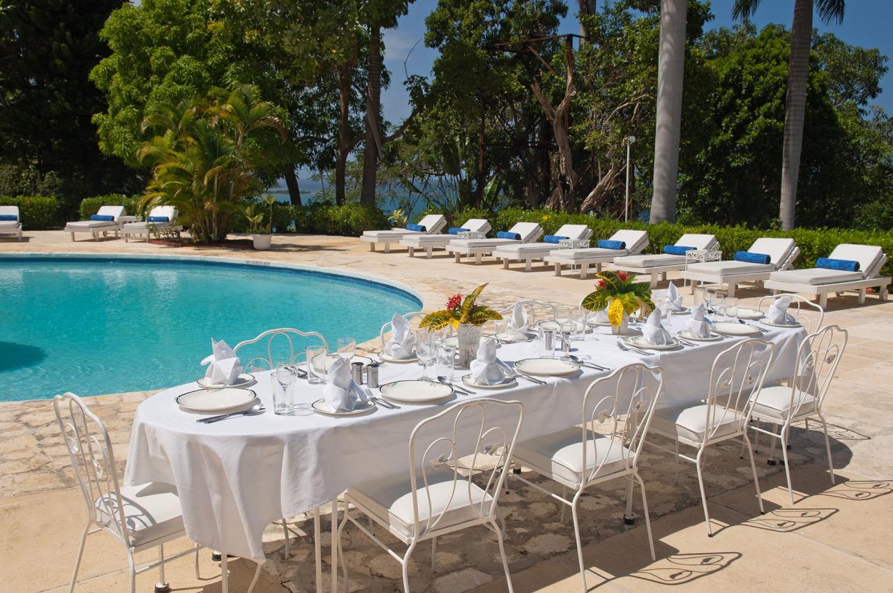 The Jamaican setting of Pharos Summertime Villa is truly breathtaking. It is situated on five sunny acres of landscaped grounds, adorned by an abundance of palm trees, bougainvillea, and hibiscus. A large private pool surrounded by a low hedge, with an exquisite view of the ocean, is just one amazing feature you will find at this villa. A wet bar by the poolside allows you to afford the ultimate in casual relaxing. Pharos Summertime Villa is a private haven of comfort and luxury on a lush green hillside over the sea. This spacious Colonial manor was renovated recently with Laura Ashley fabrics, soft pastel wall colors, new art, new bathrooms, and new kitchens. One of the latest additions is the 17' x 132', 4-hole putting green. Pharos Summertime Villa can accommodate up to thirteen people, either as a single group or up to 3 smaller groups. The sleeping areas are set up so that there are two bedrooms in the main house, as well as the East and West wings. There is a private porch on the west where you'll enjoy your morning coffee or laze away the afternoon in the shaded hammock. Both rooms open to the pool terrace. Delicious home-cooked meals prepared by the Pharos Summertime Villa chefs are served on Royal Worcester and Royal Dalton china on the open-air poolside veranda. As a special treat, on moonlit nights meals are served on the terrace beyond the pool overlooking the romance of lights reflecting across the bay. Memorable dinners here can last for hours as guests relax into the heady ambiance of good food and drink, excellent service, and a magnificent setting.