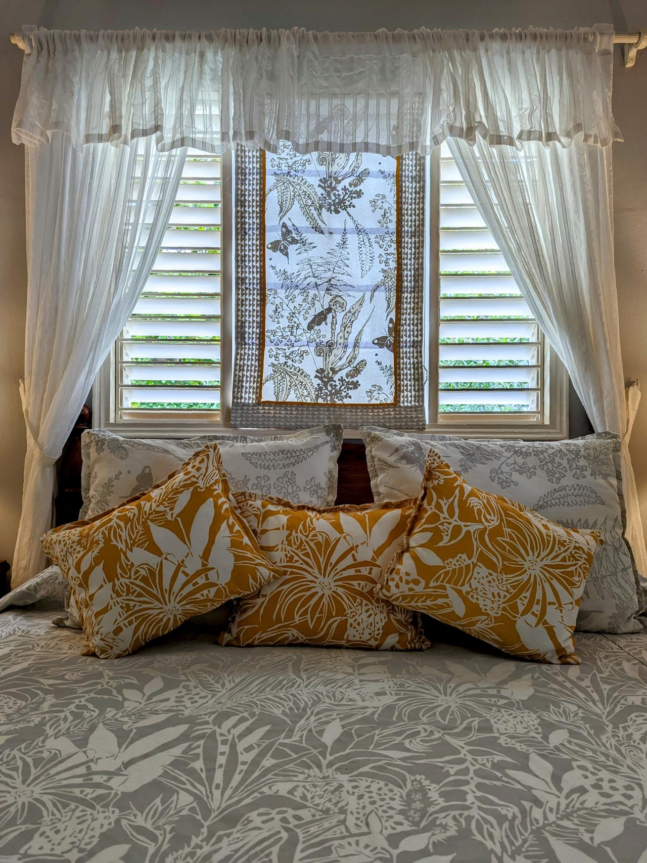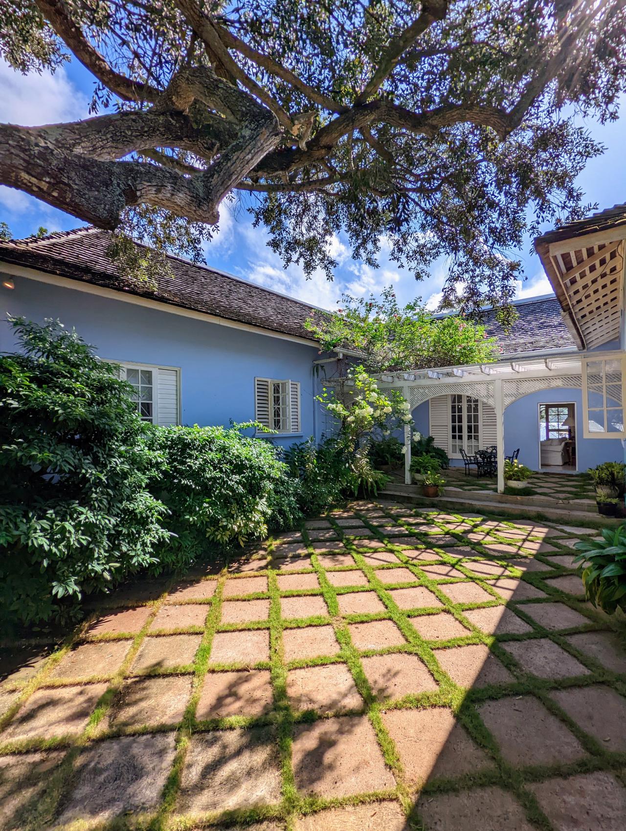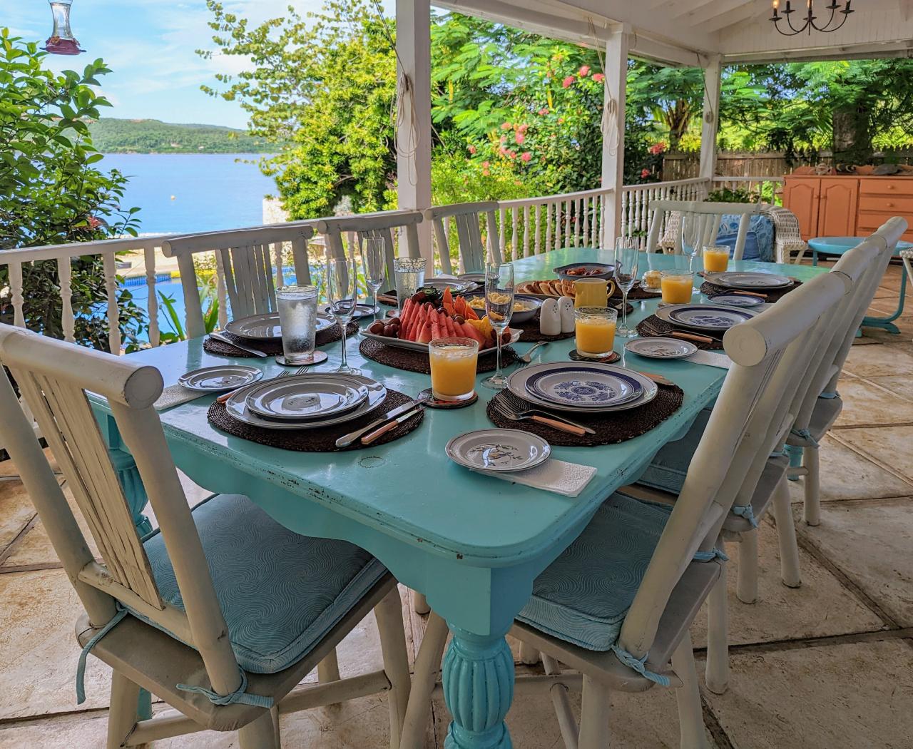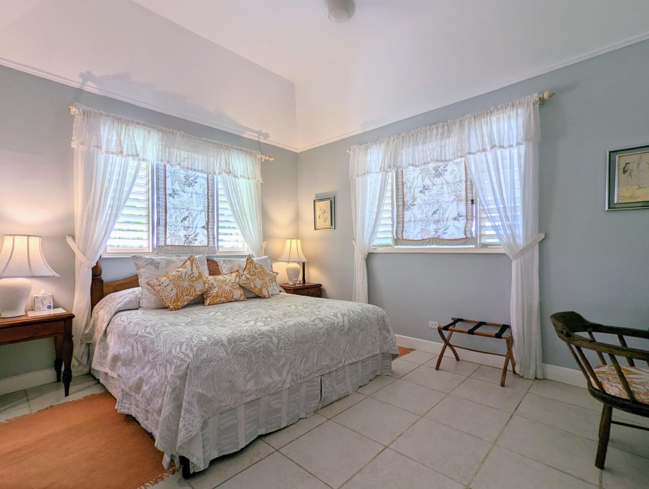 Located on a private waterfront acre, Sea Haven is a traditional West Indian cottage dressed in charming periwinkle blue. It sits directly on the edge of beautiful Discovery Bay. The living room is sunshine yellow with a vaulted ceiling painted to match the sky. Antiques include a 200-year-old rocker made of twigs. Tortoise-back mahogany dining chairs Circa 1780 are from Admiralty House in Port Royal and were used by Lords Rodney and Horatio Nelson. A rough-hewn 17th Century chair in the master bedroom belonged to the captain of a schooner that plied between the islands. A 19th Century lady's writing desk adorns another bedroom.