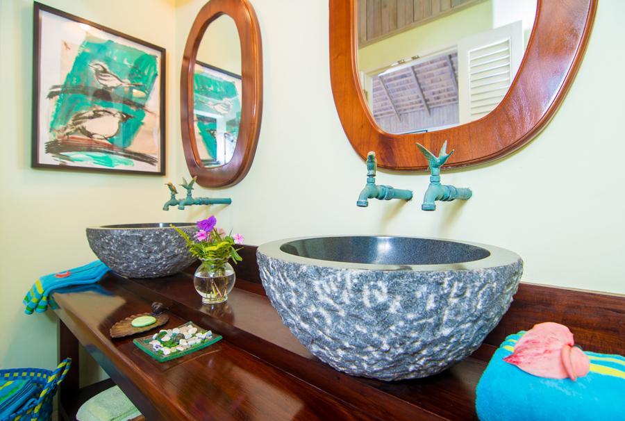 Bedroom 2: Queen bed, en suite bathroom with shower and granite sinks, garden shower