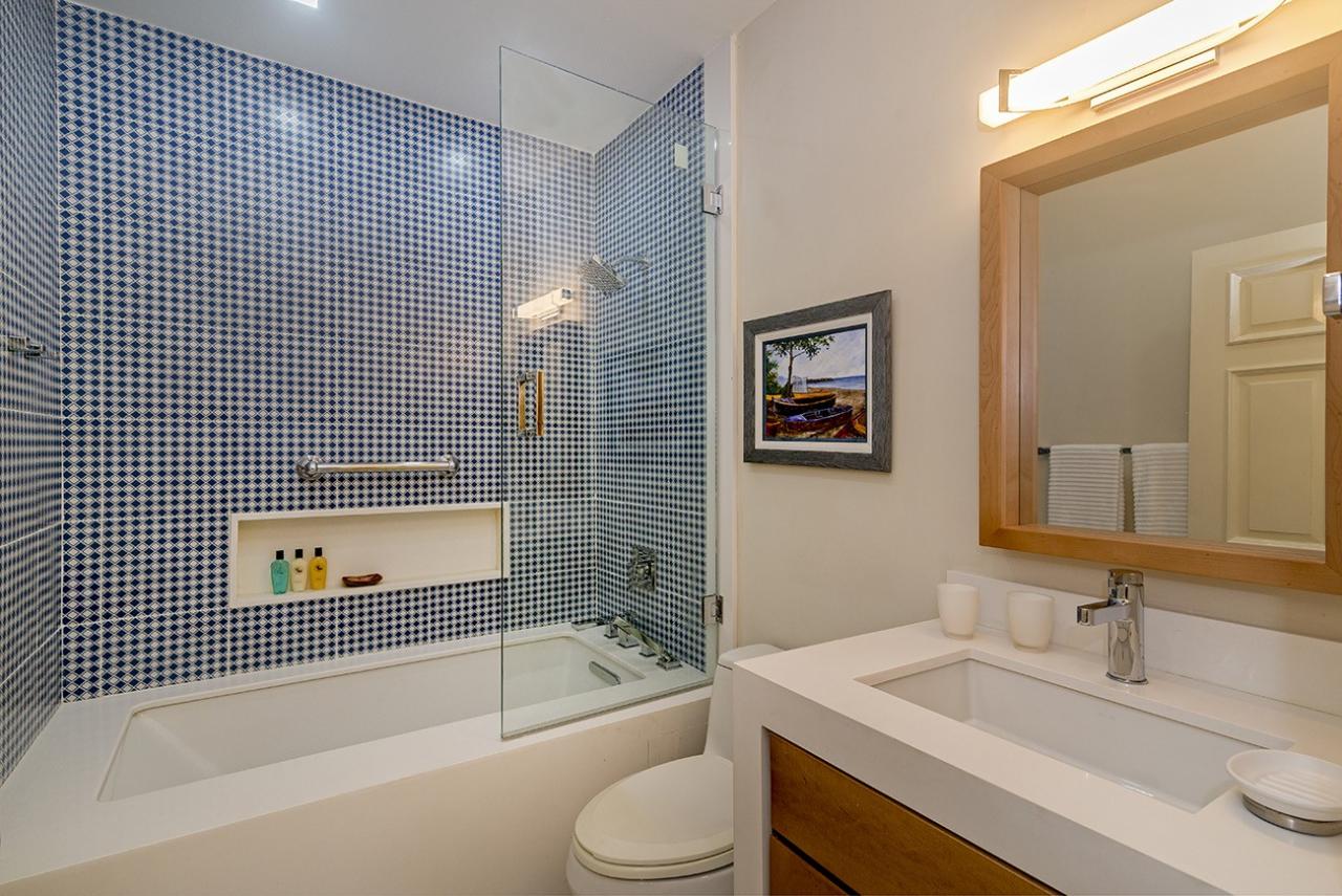 Bedroom 3: This room is equipped with an optional king-sized bed or two twin-sized beds, a walk-in closet, and an ensuite bathroom with a walk-in shower. Bedroom 3 also has a balcony with an ocean/sunset view.