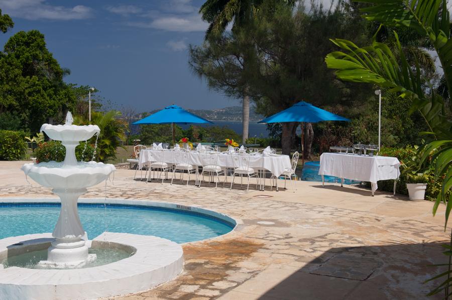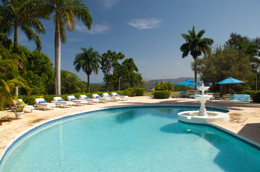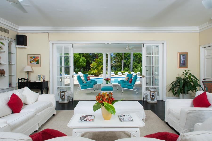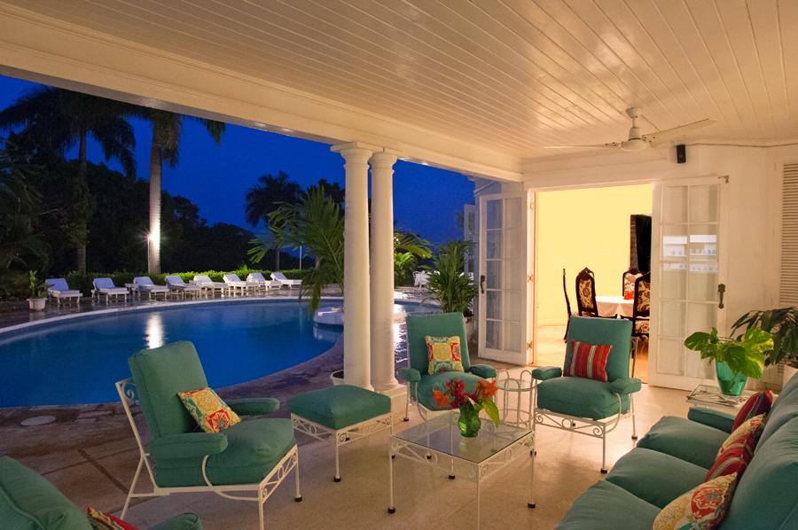 The setting is breathtaking: five sunny acres of landscaped grounds adorned by an abundance of palm trees, bougainvillea and hibiscus, a large private pool, vegetable garden and wooded grotto with antique stone terrace for sunset cocktails. After sunset, the view transforms from brilliant blue water to the mesmerizing beauty of the sea at night, glimmering with reflections of cruise ships and the romantic night lights of Montego Bay nine miles away.