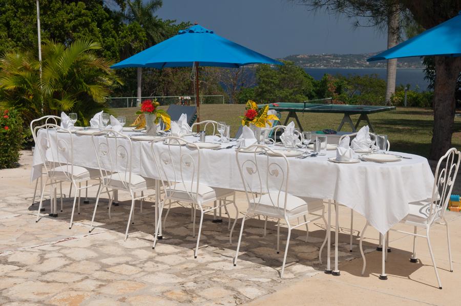 Delicious home-cooked meals prepared by the Summertime cook are served on Royal Worcester china on the open-air poolside verandah. As a special treat on moonlit nights, meals are served on the terrace beyond the pool overlooking the romance of lights reflecting across the bay. Memorable dinners here can last for hours as guests relax into the heady ambiance of good food and drink, excellent service and a magnificent setting.