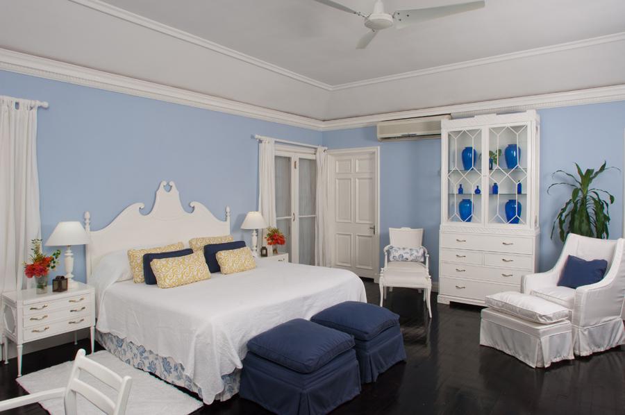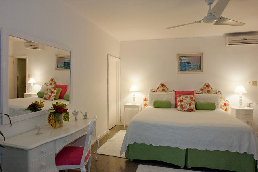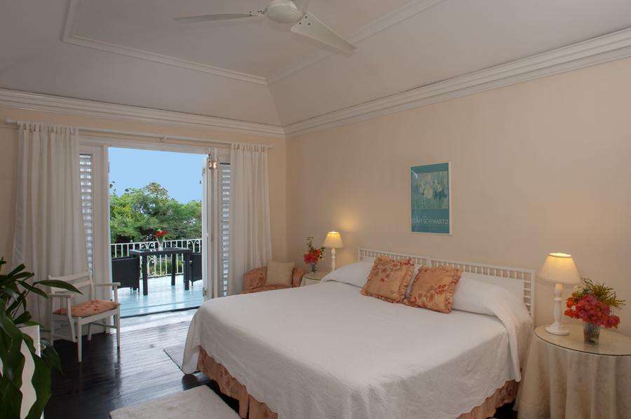 - Ivory Room: King bed (can be converted to two twin beds), en suite bathroom with shower, doors to rooftop, ocean view, TV, DVDs, VCRs, CD players, AC