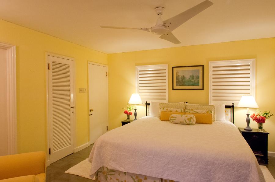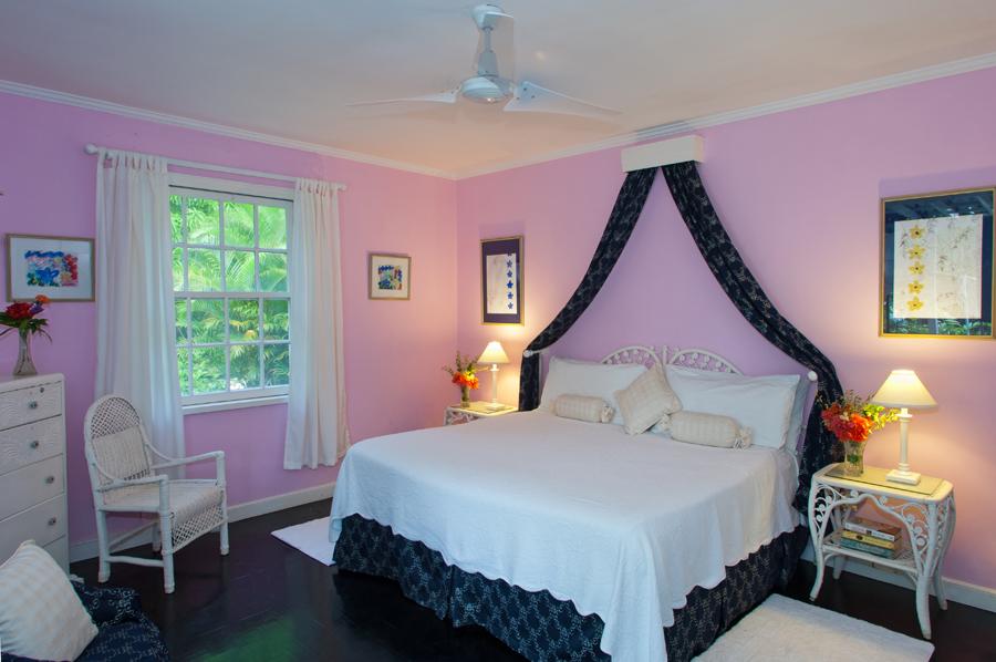 - Lavender Room: king bed (can be converted to two twin beds, en-suite bathroom with tub-shower combo, connecting door to Yellow Room, opens to pool terrace. TV, DVD, VCR, CD player, AC