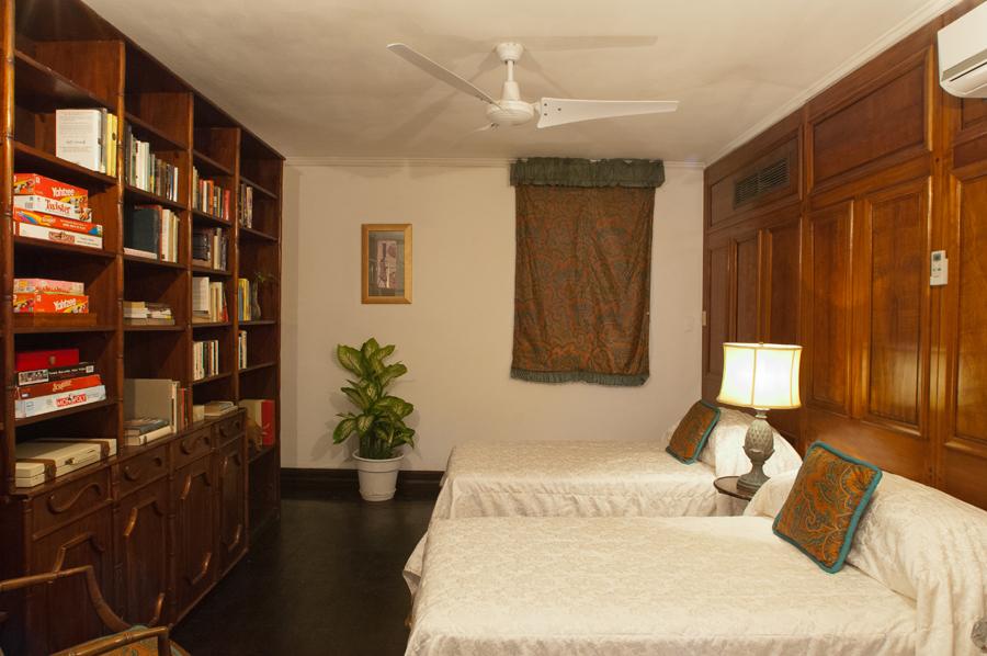 - Study West Wing: King bed (can be converted to two twin beds), en suite bathroom with tub and shower, TV, DVDs, VCRs, CD players, AC