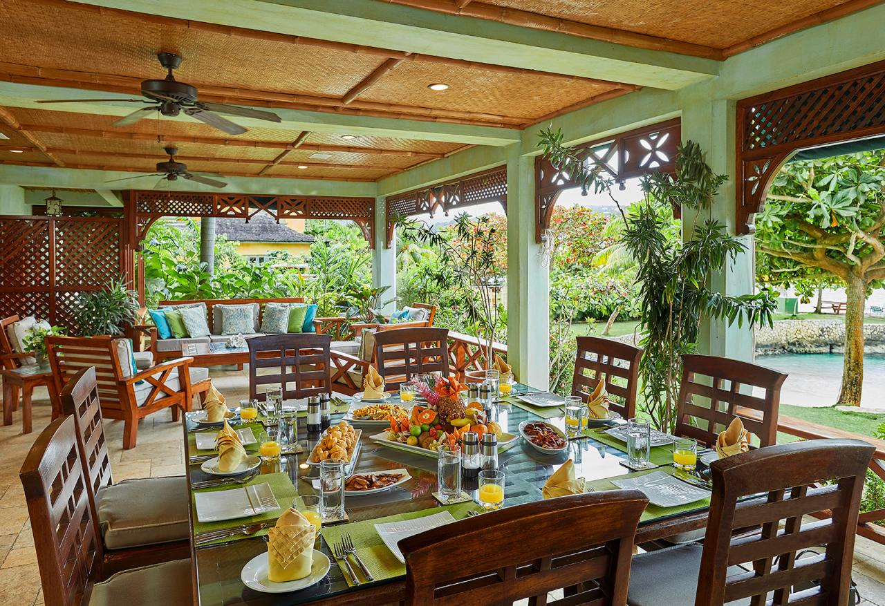 Inside and outside dining tables accommodate up to 14 guests. As a special treat, the staff will plan a torchlight beach party ~ chicken, lobster or fresh-caught fish grilled on the outdoor barbecue. Families renting both villas may have lunches and dinners together on request.