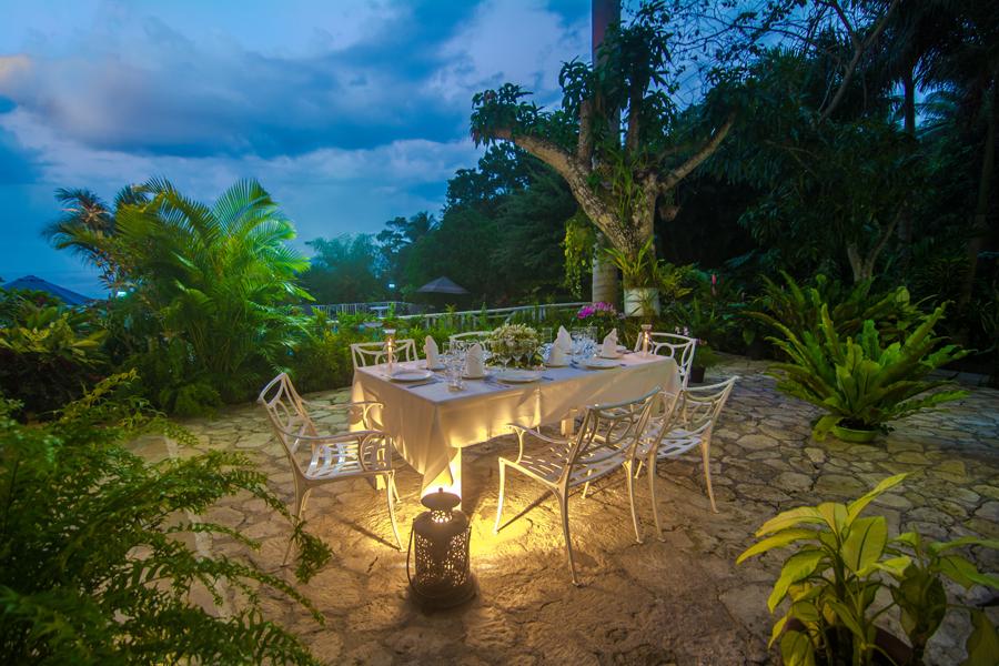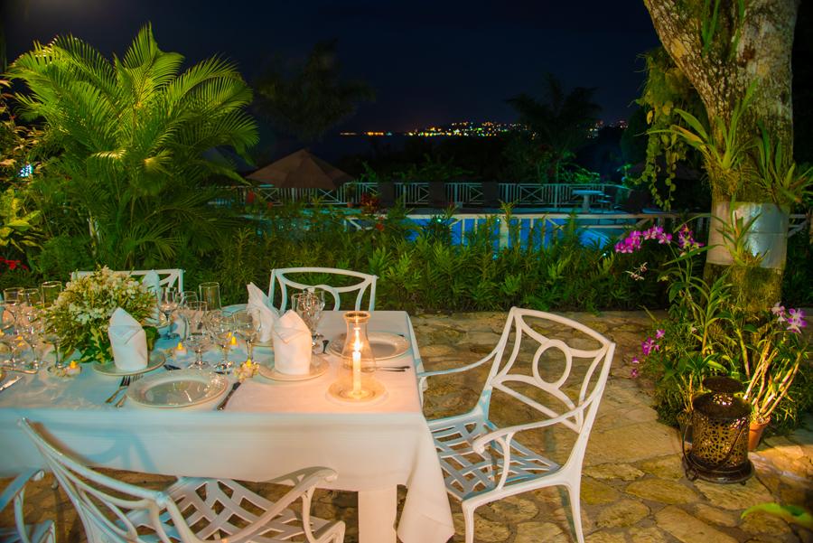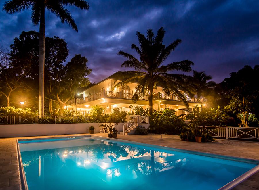 In true Colonial style, Wild Orchid is meticulously staffed so that guests are pampered through sunny days and relaxed evenings ... with memorable home-cooked meals served in the spacious indoor dining area or on the large open verandah under the almond trees ... cooled by the tradewinds. The night view from Wild Orchid is breathtaking ... especially from the al fresco dining terrace.