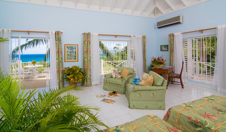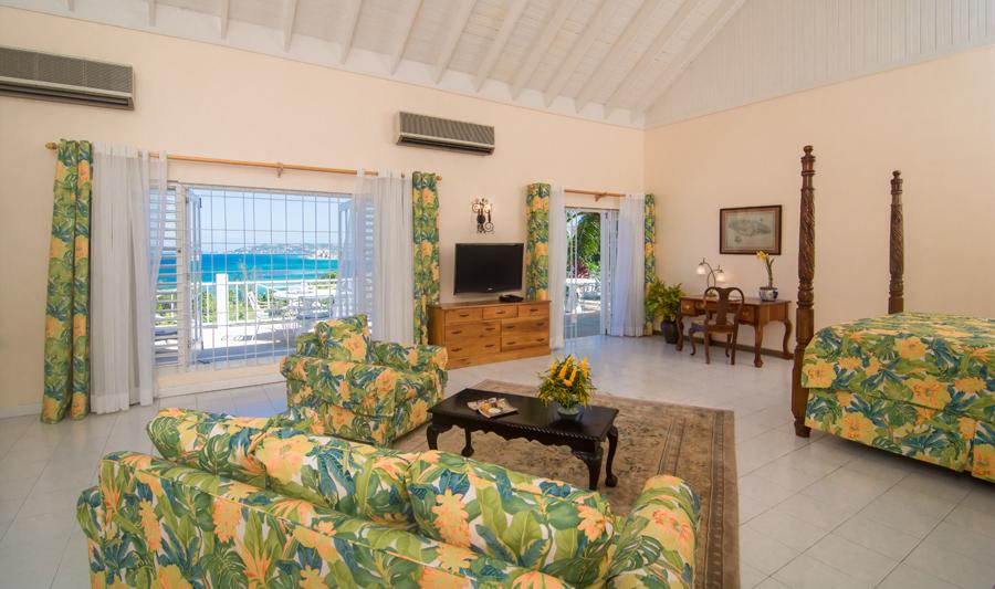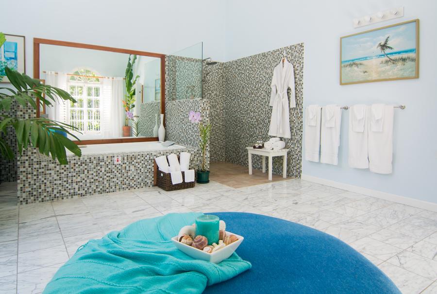 Bedrooms 1 & 2: Two 20' x 30' Primary Bedrooms one with a king-size bed, the other with two double beds, plus sitting areas ... one with shower and tub for two, the other with shower and Jacuzzi tub. Each master suite opens to a glorious balcony view of Montego Bay. Eye-opener coffee is delivered to the balcony each morning.