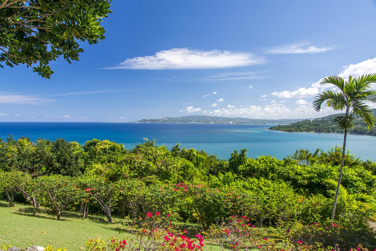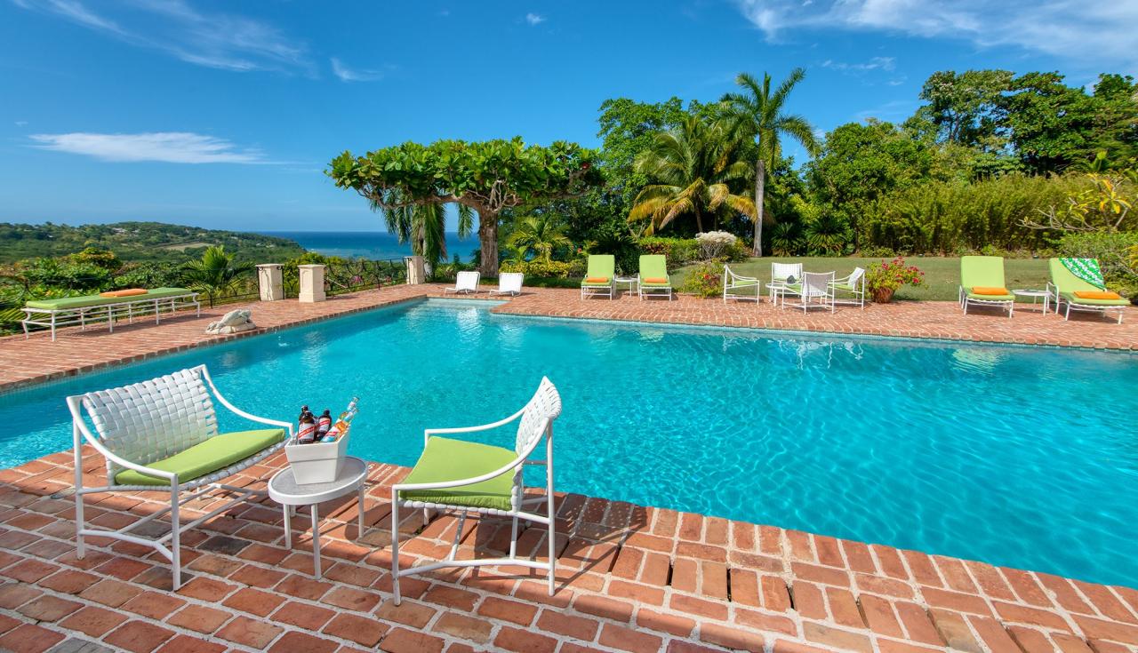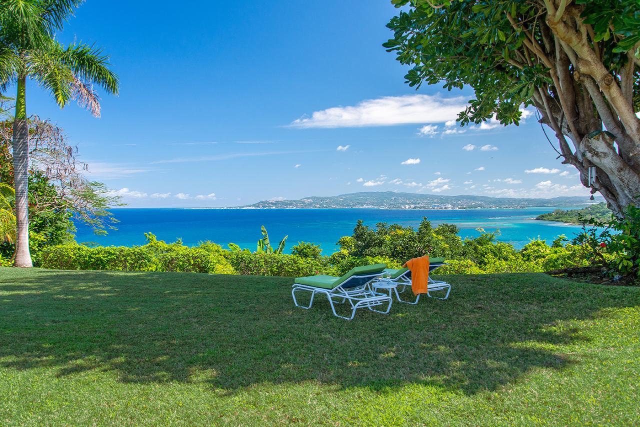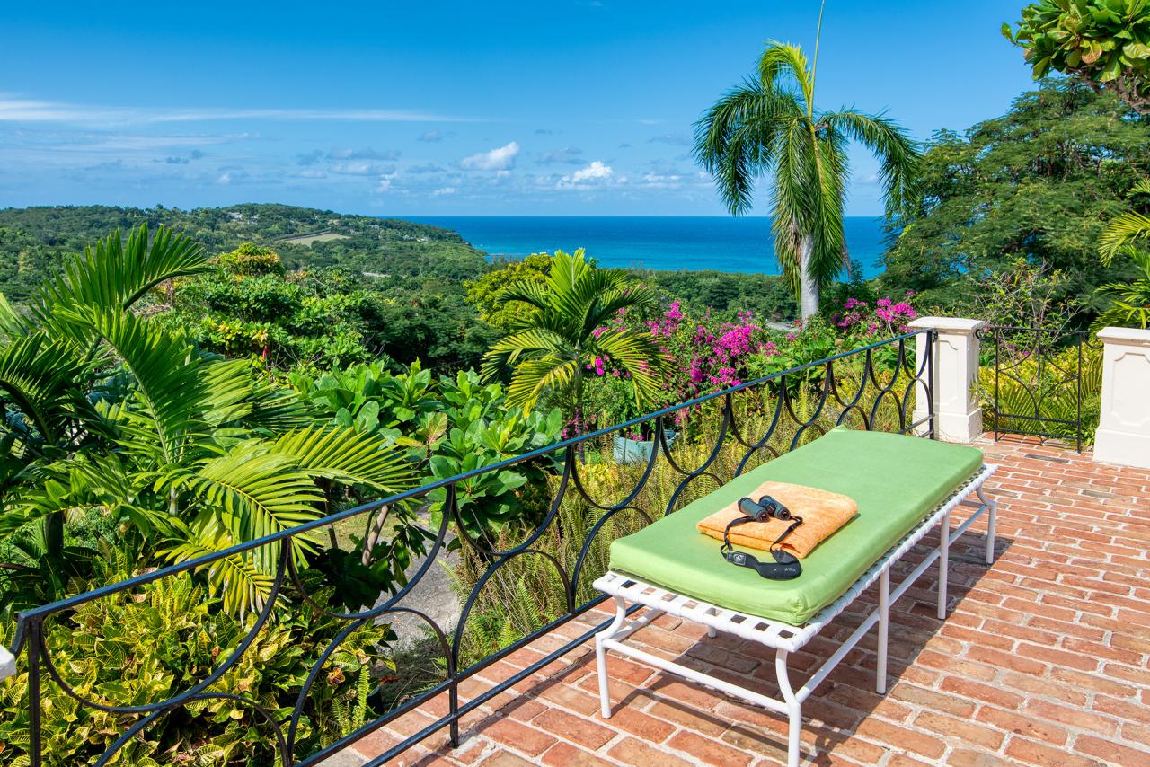 Windsong is an exquisite and very private home four minutes from Round Hill. Designed by noted architect Kasimir Korybut, the site benefits from spectacular views day and night and the most favorable tradewinds. The east view captures the sunrise and Montego Bay ~ the west, an equally lovely vista of Round Hill, the sunset and ocean. The grounds are like a park ~ plentiful with tropical trees bearing almond, coconut, lime, avocado, orange, ackee, breadfruit, fig and papaya and adorned by brilliant hibiscus and bougainvillea. Five fountains grace the indoor gardens. From the central fountain, stone walkways lead to the Great Room, inside dining room, bedrooms and bar ... and the wonderful 700-square-foot verandah with its casual al fresco dining area overlooking the pool.