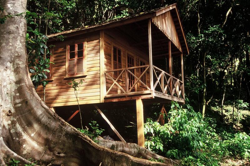 The island of Dominica, set between Martinique and Guadeloupe, is the Caribbean in its purest form and Jungle Bay Resort and Spa captures that sense of the wilderness. On this island with lush green forest covered mountains, towering palms, beautiful flowers, home of rare species of parrots and orchids, dramatic waterfalls, and hot springs and rivers, guests feel as if they are walking in Eden. Jungle Bay Resort and Spa is bordering the Atlantic Ocean and Morne Trois Pitons National Park, a UNESCO World Heritage site. The award winning Jungle Bay Resort and Spa is known as an eco-luxury property, retaining the comforts and high standard of service to guests, while operating in a sustainable way. The property is located on 55 acres of lush tropical jungle ready to be explored. Plenty of excursions, lots of adventure, on site activities, and the opportunity to relax and rejuvenate are offered by the Jungle Bay Resort and Spa every day. Enjoy the privacy of the spacious, rustic, yet comfortable and luxurious cottages with wonderful rainforest views. The facilities were designed with the natural environment in mind. Guests have to be prepared for walking, as some cottages are located up to 200 steps away from the main path. The cottages at Jungle Bay Resort and Spa are unique Caribbean accommodations. 35 tastefully furnished tropical hardwood cottages are elevated on wooden posts, nestled beneath the undisturbed jungle of Dominica. The cottages at Jungle Bay Resort and Spa are spacious and feature wood furnishings all designed and built at Jungle Bay Resort and Spa. They are perched like birds nests, tucked away on a hillside between Cedar, Gomier, and Galba trees. Special care was taken to preserve the forest in its original form. Cottages at Jungle Bay Resort are accessed through a series of footpaths and stone staircases. The low impact night lighting along with the sound of the Atlantic surf creates a romantic, surreal ambiance.