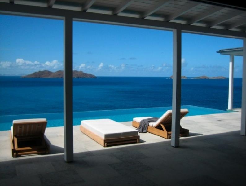 Villa Ella is hung above the sea on the cliff between Saint Jean and Lorient in St Barts. The lofty location creates exquisite views of the Saint Jean Bay and the French Caribbean. Open to the sea and sky, Villa Ella will entertain you with sailboats, yachts and sunsets. The outside area is very pleasing with a large 55' sapphire colored swimming pool overlooking the ocean with spacious covered and open terraces, outdoor sofas, pool beds, and very comfy chaise lounge chairs. Villa Ella has grand scale rooms, custom french doors and the highest quality fixtures. It includes two master bedrooms privately located at either end of the villa, three full bathrooms, a Varenna kitchen with outdoor dining area and a library/TV room. The contemporary villa is extremely spacious, offers a lot of indoor and outdoor living area and overlooks an amazing view on the ocean between St Jean and Lorient. The sophisticated contemporary decoration combined with the extraordinary view, pool and comfort make this villa one of our favorites. We provide a concierge to make sure your stay at Villa Ella is easy and memorable. Your concierge will help in pre-trip planning, airport transfers, pre-arrival grocery shopping, acquainting you with the home, chef services, spa services, making reservations, suggesting other activities, and answering questions you have about the area. You'll feel like a local!
