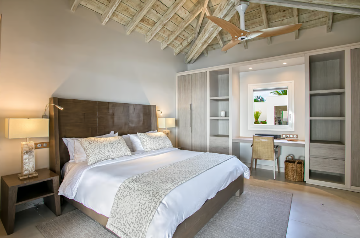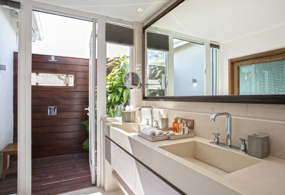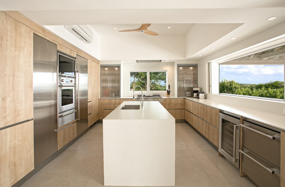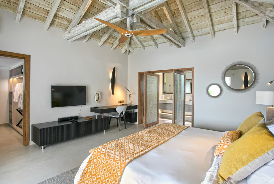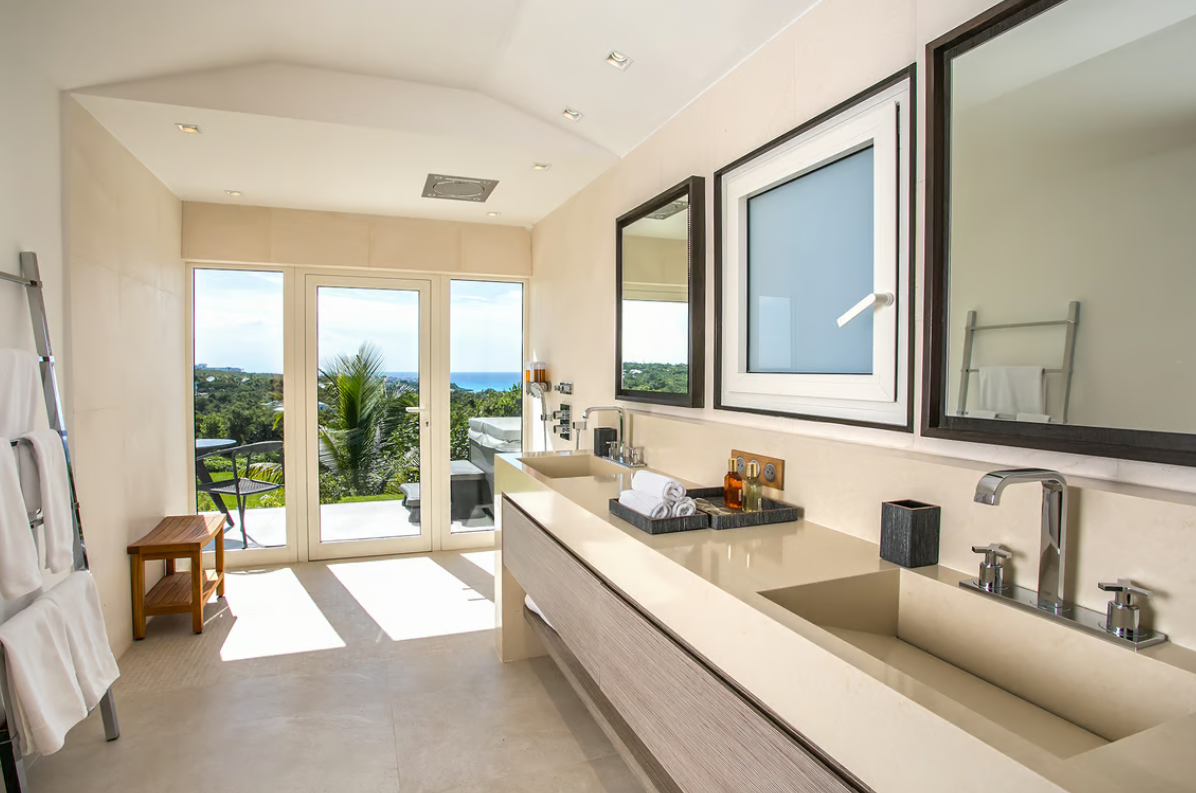 Each of the five king-size bedrooms boasts en-suite bathrooms with rain showers, and four of them have walk-in closets. The master suite offers a private lounge, terrace with a jacuzzi, and Smart TVs with Bose soundbars. Avanti provides exquisite attention to detail and premium comfort. Near Terres Basses’ beaches and the nightlife of Maho. Avanti provides for perfect St. Martin retreat.