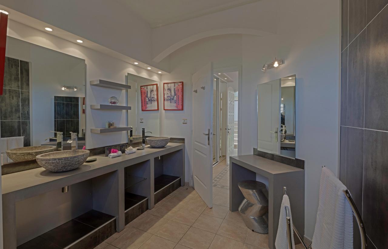 There is a fully equipped modern kitchen and a gas grill for barbecuing on the terrace. The 6 spacious bedrooms each have an en-suite bathroom and air-conditioning. For the “sportif” the villa has a large exercise room on the lower floor with gym and games facilities and for outdoor sports there is also a tennis court.