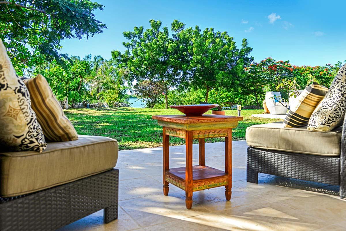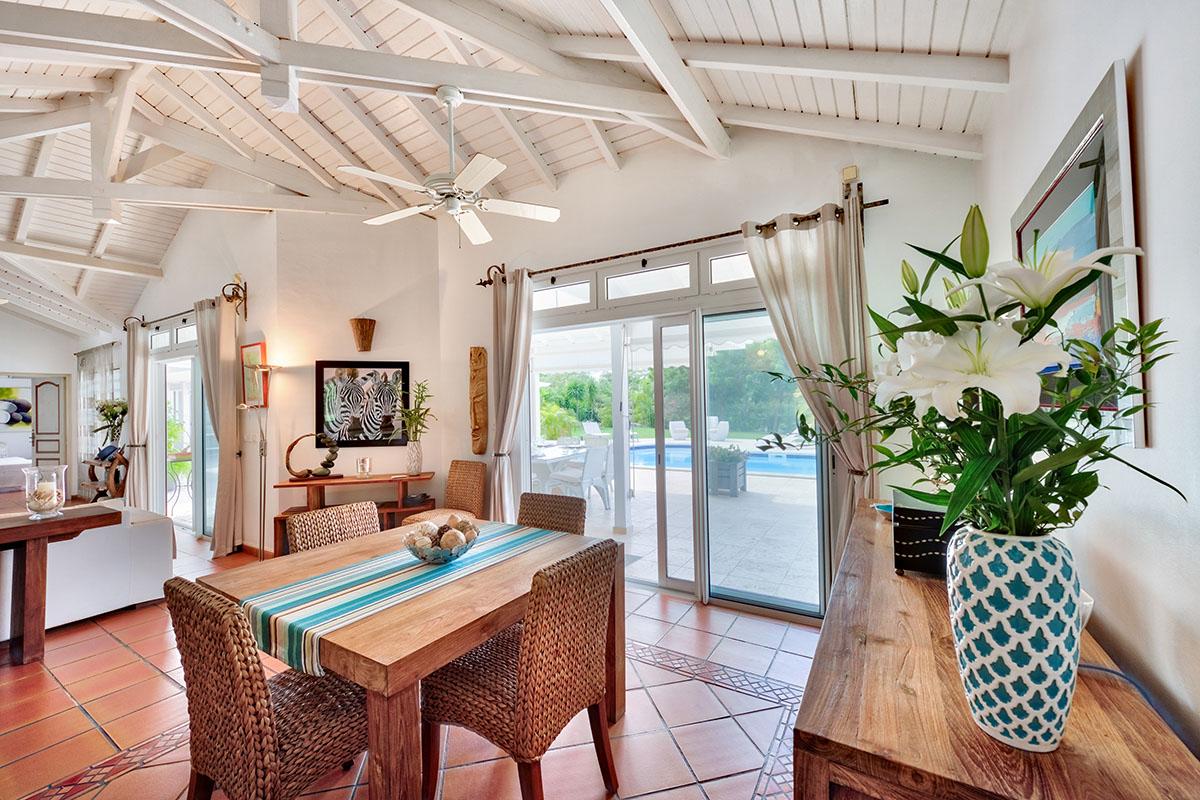 Cyrano is a lovely Creole style cottage overlooking the tranquil pond of Terres Basses, surrounded by lush mangroves. A beautiful green lawn flows from the villa and terrace down to the pond. Beautiful sea grape and palm trees create shaded spots. Colorful tropical shrubs and flowers dot the lawn. It is a gentle and relaxing place. It is very Zen and yet the luxury hotel Belmond Hotel La Samanna is just across the road; a convenient place for a superb lunch and beach lounging.