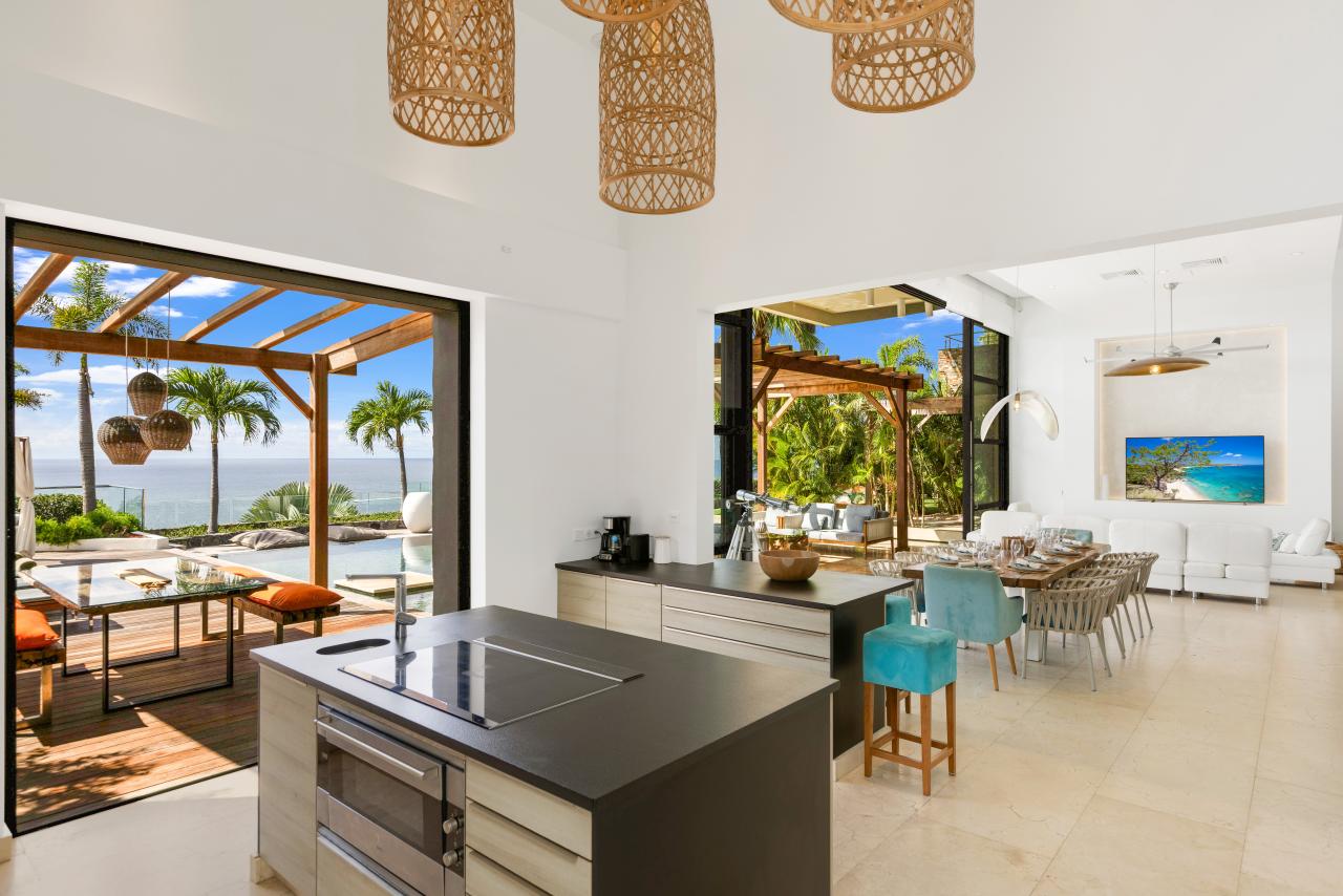 Set in the hillside of Indigo Bay, St Martin, you will find our newest luxury 4-bedroom villa - Emeraude - offering breathtaking views of the Caribbean Sea and Saba island in the distance. This modern family home has it all - large open spaces, high-end furnishings and all the amenities one would need on a tropical holiday.