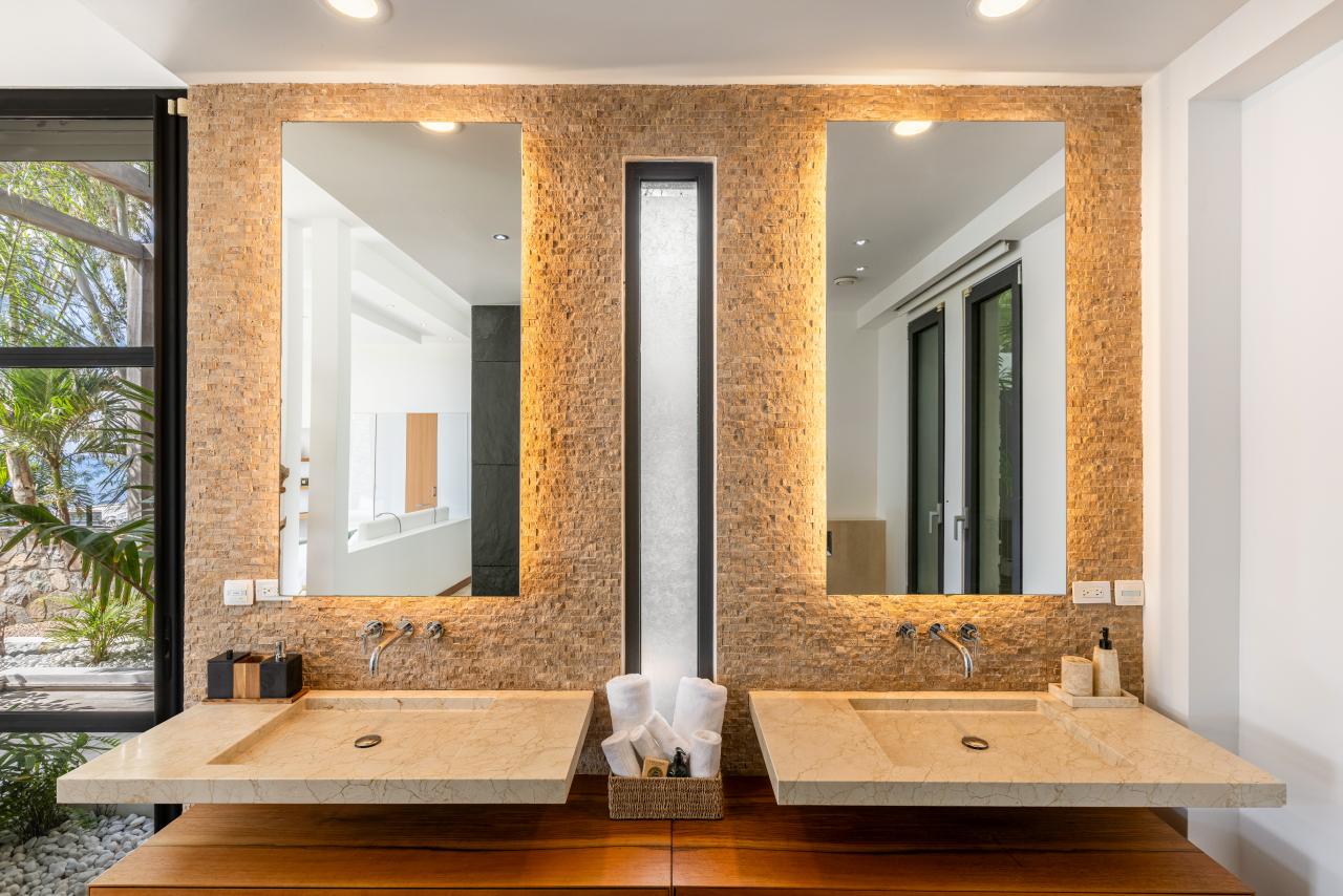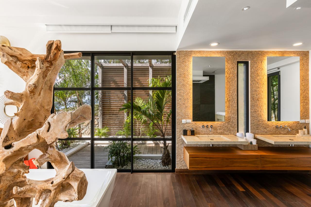 Timber and stone are featured throughout the villa: on the walls, the furniture and in the unique decorative elements. Decorations are made of earthy colors with touches of gold and emerald green. The villa successfully combines modern style and natural elements affording guests the opportunity to share beautiful moments in style while never forgetting the natural beauty that surrounds them.