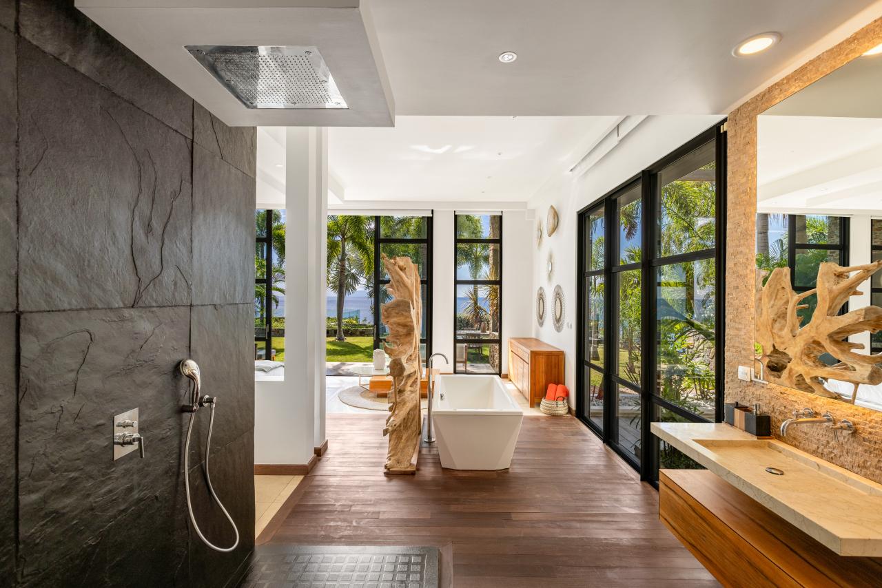 · Bedroom 1: King bed, en suite bathroom with stand-alone rain shower & bathtub, AC, ocean view