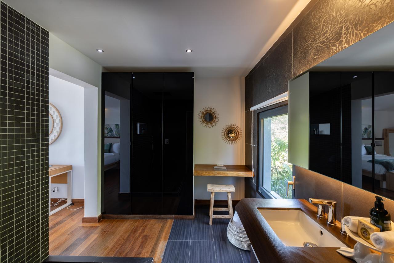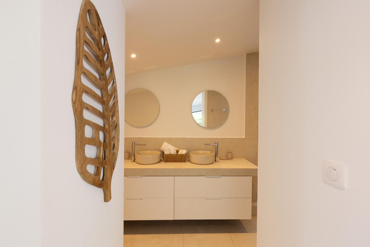 Villa Emeraude is part of the larger Emeraude Estate. Emeraude Hideaway is a 2-bedroom villa on the same land as Villa Emeraude and can be rented separately or with Villa Emeraude to make a 6-bedroom estate. Villa Emeraude and Emeraude Hideaway share the same gated entrance but have their own defined spaces to ensure privacy for both rental properties.