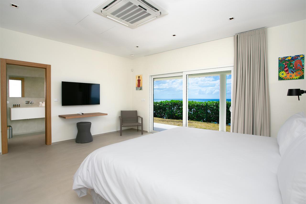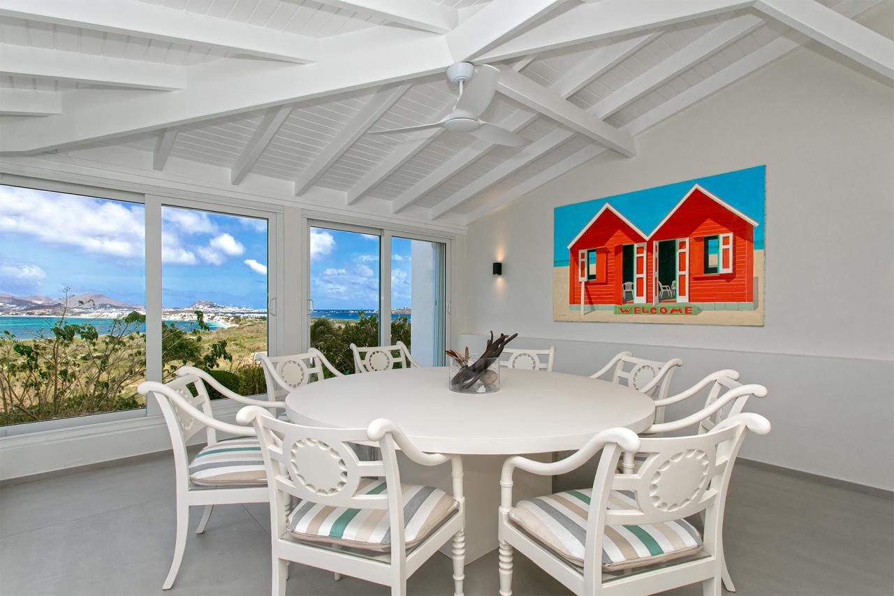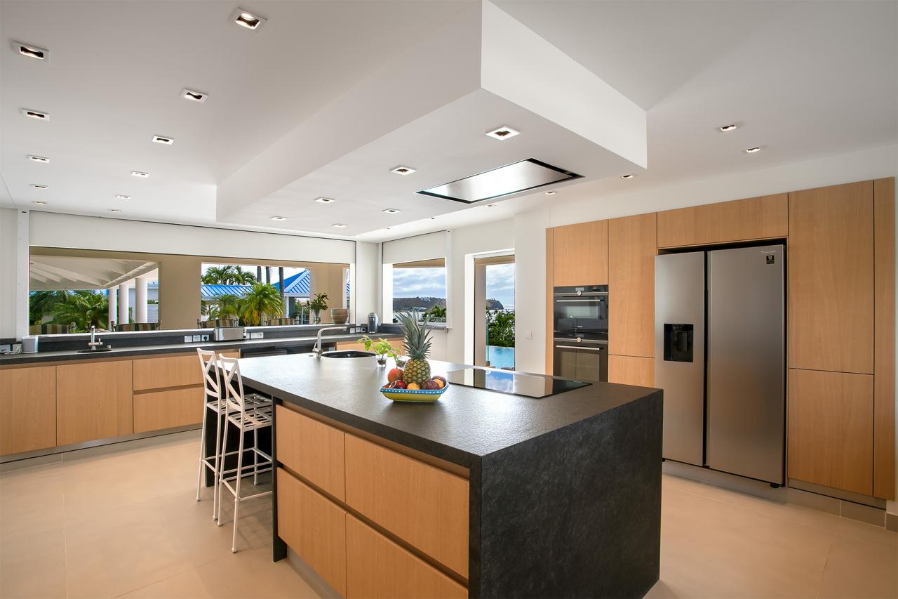 The villa offers a blended ambience of relaxed, romantic oasis with luxurious, understated elegance and modern amenities catering to your most discriminating taste. You will love the spacious open floorplan gourmet kitchen and living room with formal dining area overlooking the infinity pool and the spectacular views of the ocean beyond of Baie Rouge beach and the British island of Anguilla.