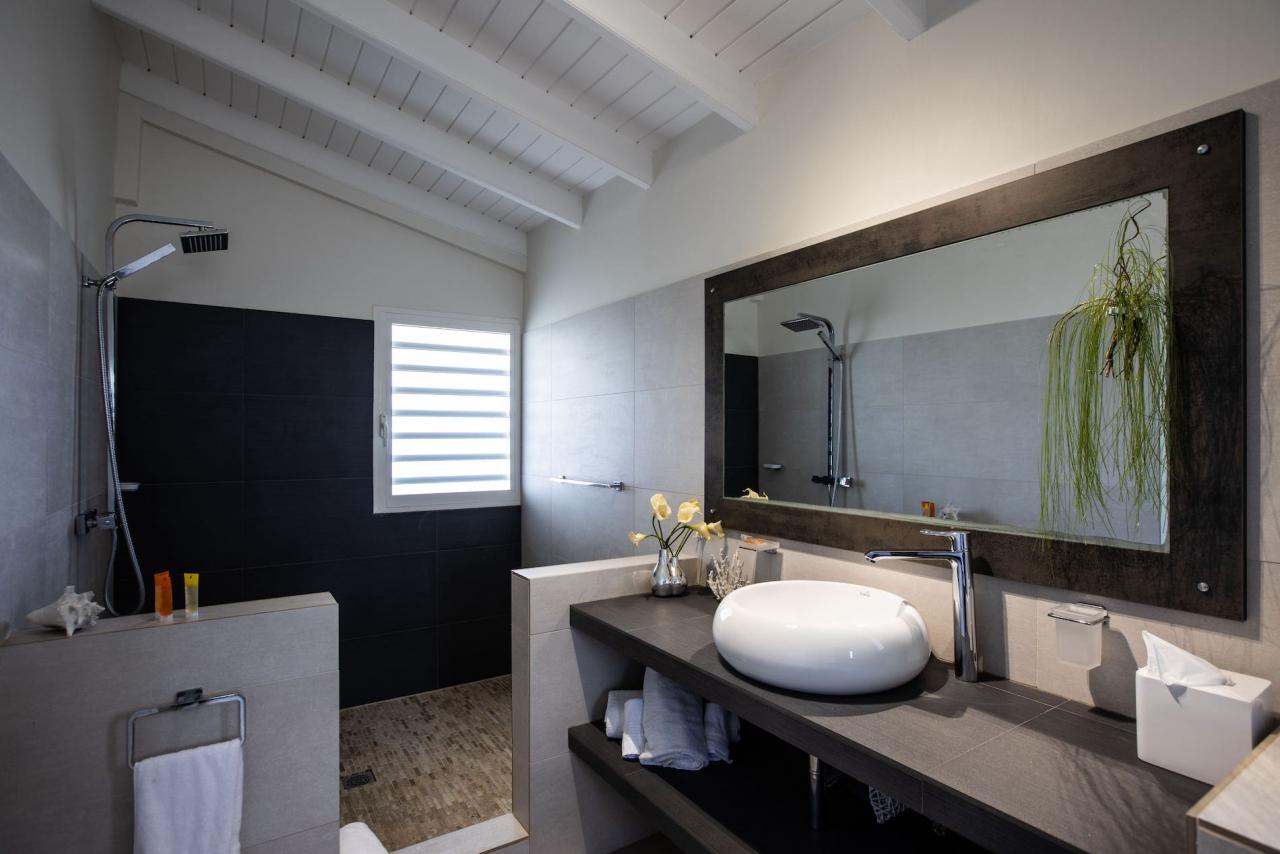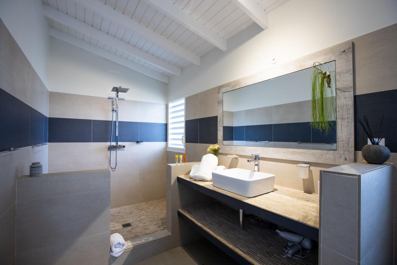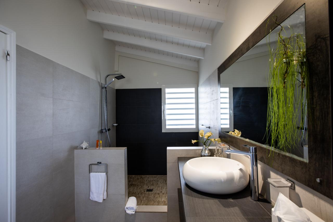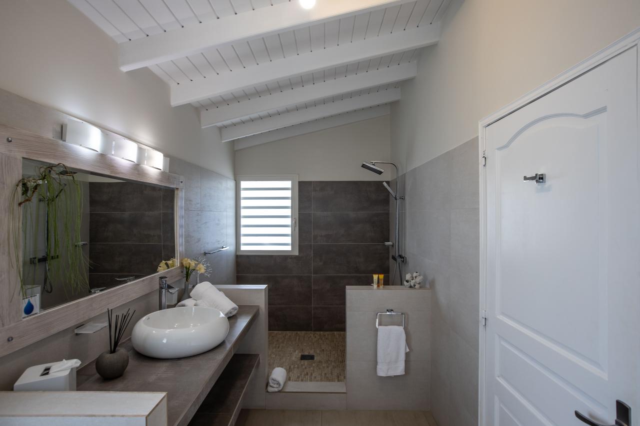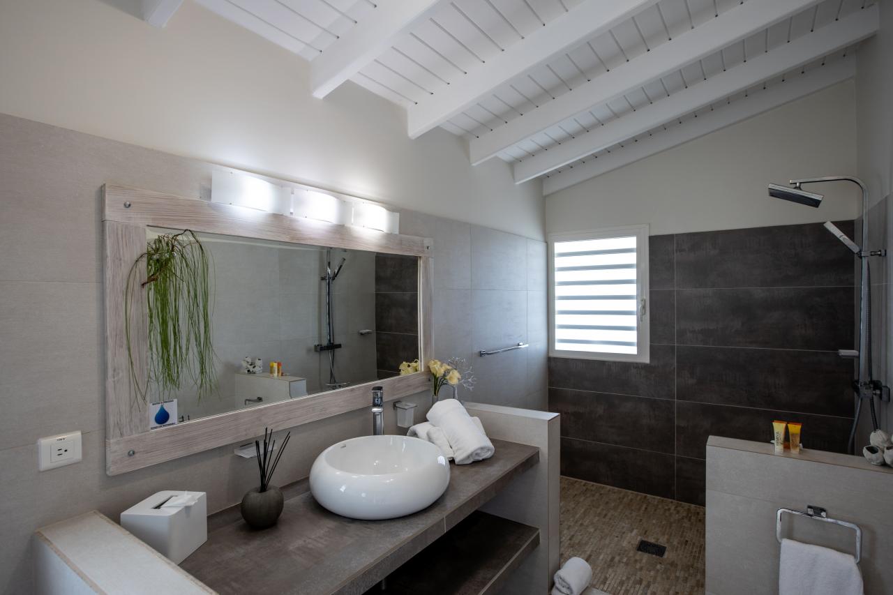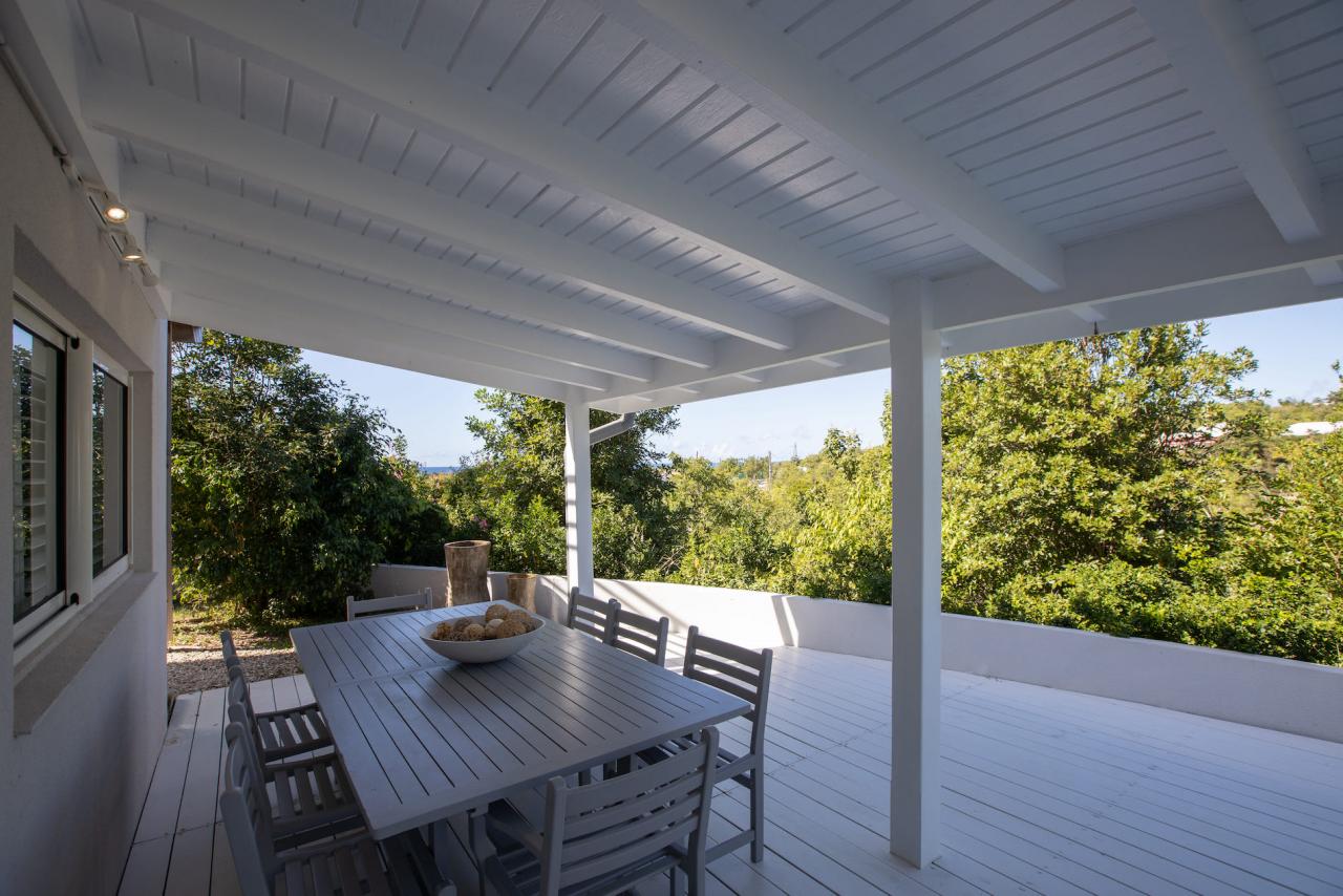 Giselle’s heated pool on the spacious terrace overlooks Plum Bay Beach and the sumptuous setting sun. This superb St Martin rental has a 180º view of the crystal blue waters of the Caribbean and is but a short 5-minute walk to the beach.