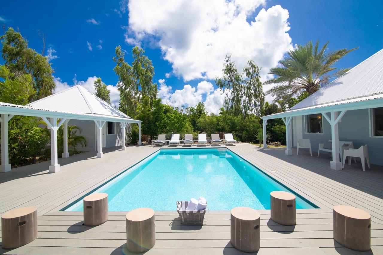 Build in the traditional French Caribbean style, Greystone is nestled in a tropical garden that ensures total privacy, yet just a five-minute drive to Plum Bay Beach.. The villa's bungalow surrounds the large heated swimming pool. The living area and kitchen area are in one bungalow, fully air conditioned, with comfortable plush furniture. The master bedroom and a further 2 bedrooms are in individual bungalows, each opening to the pool and terrace. Villa Greystone is a secluded and private vacation villa.