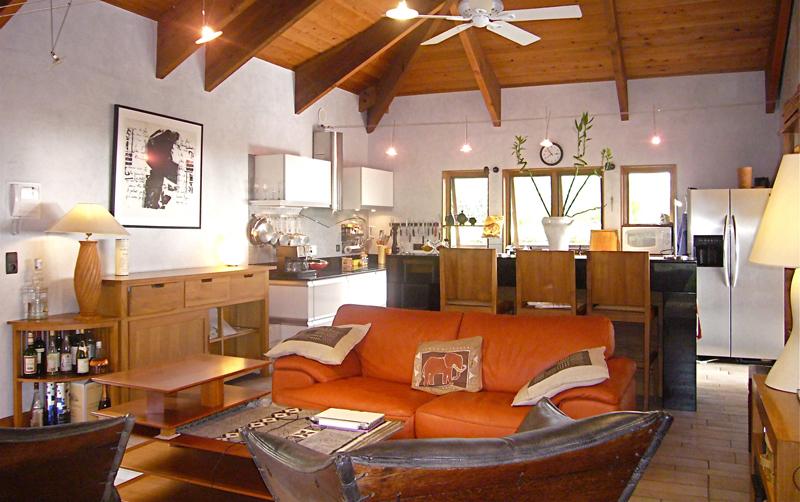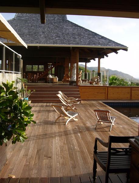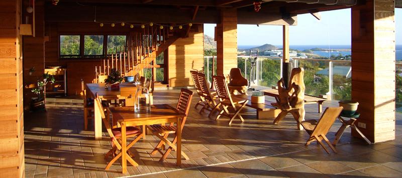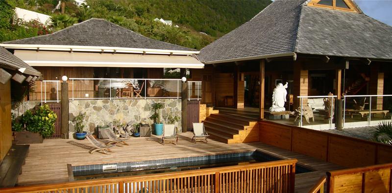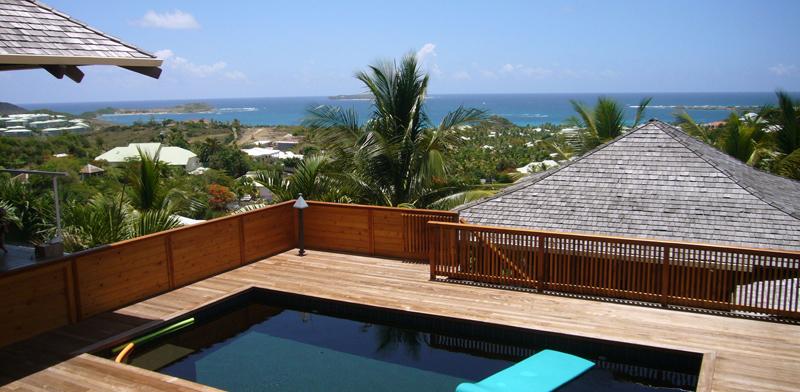 If your perfect vacation is to retreat from the world and relax, the restful ambiance of Haiku is for you. Perched high on the hills overlooking sweeping sunrise views of the ocean and Orient Bay, Haiku is the Indonesian inspired home of an architect, and reflects a level of design, quality craftsmanship, and attention to detail that is perhaps unique to this popular area. The villa comprises two distinct areas. The main living space with living/media room and adjoining gourmet kitchen and dining area, border the sun deck and inviting pool. The sleeping space is accessed by steps, and comprises the master bedroom, which overlooks and has direct access to the pool deck, and second bedroom; both with en suite bathrooms.