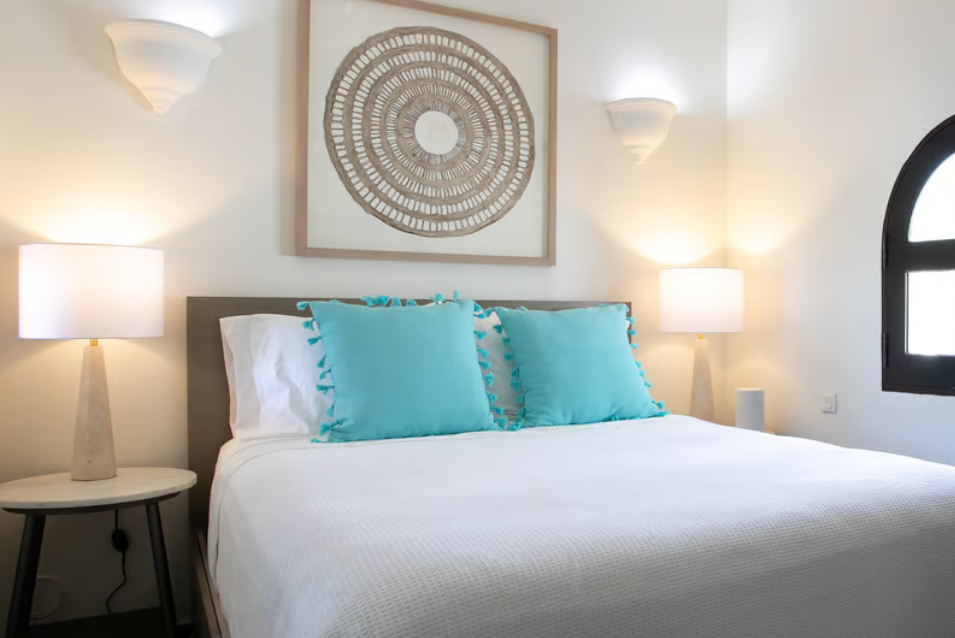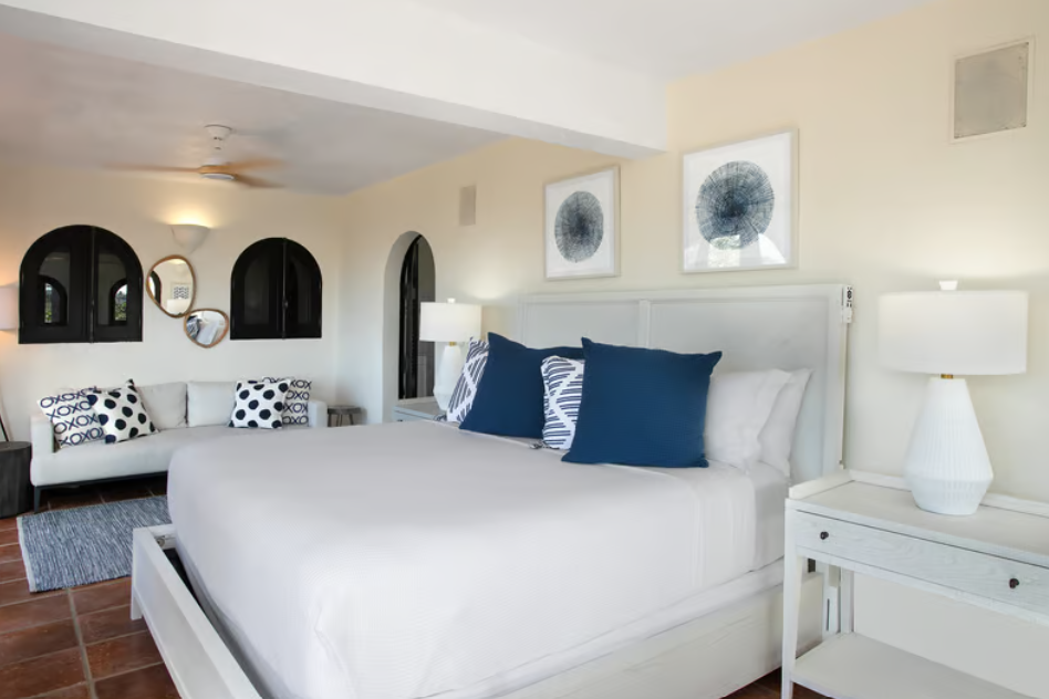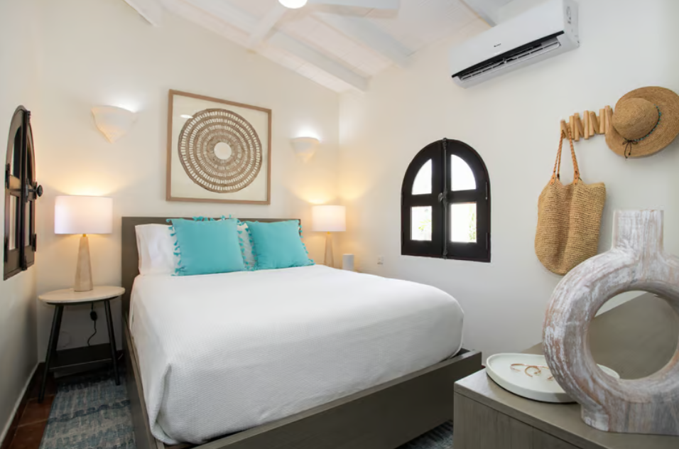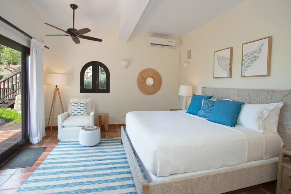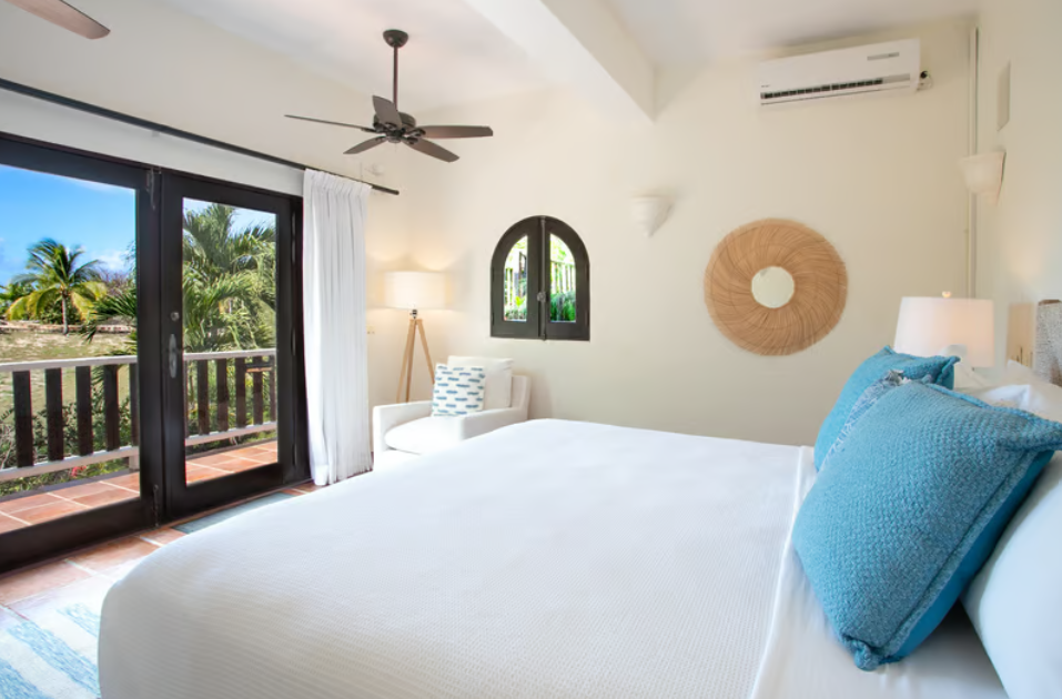 - Bedroom 2: King bed, private bathroom with shower, hairdryer, ceiling fan, AC, TV, DVD player