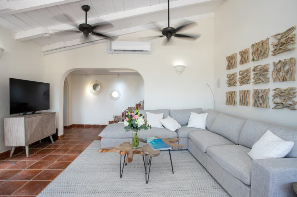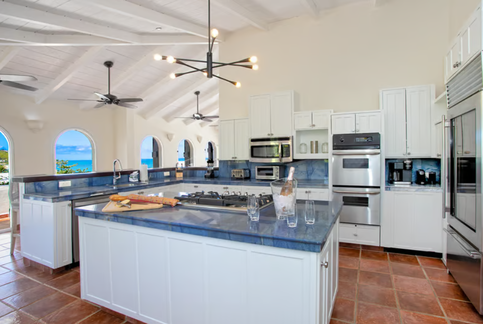 Although secluded, you are close to amenities. It is a short drive to Baie Nettle’s culinary stars Le Sand, Dreams and Mezza Luna. You are also a 2-minute drive to the restaurants and grocery store of Porto Cupecoy; a further five minutes to the airport. Marigot, the French Capital, with duty free shopping is only a 10-minute drive from the villa.