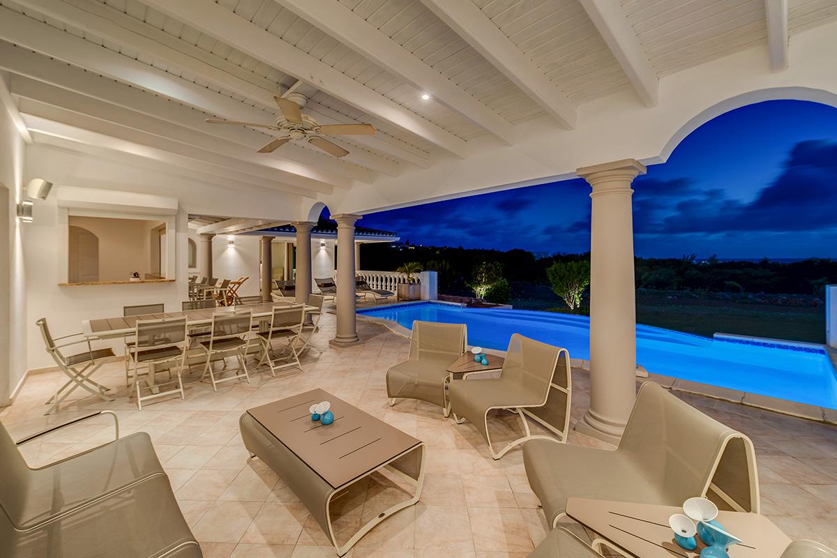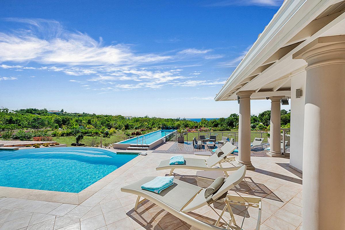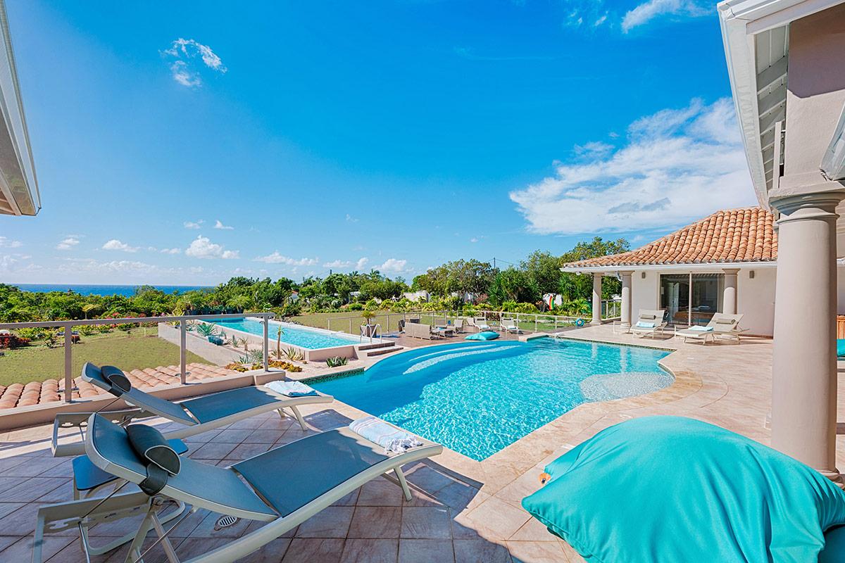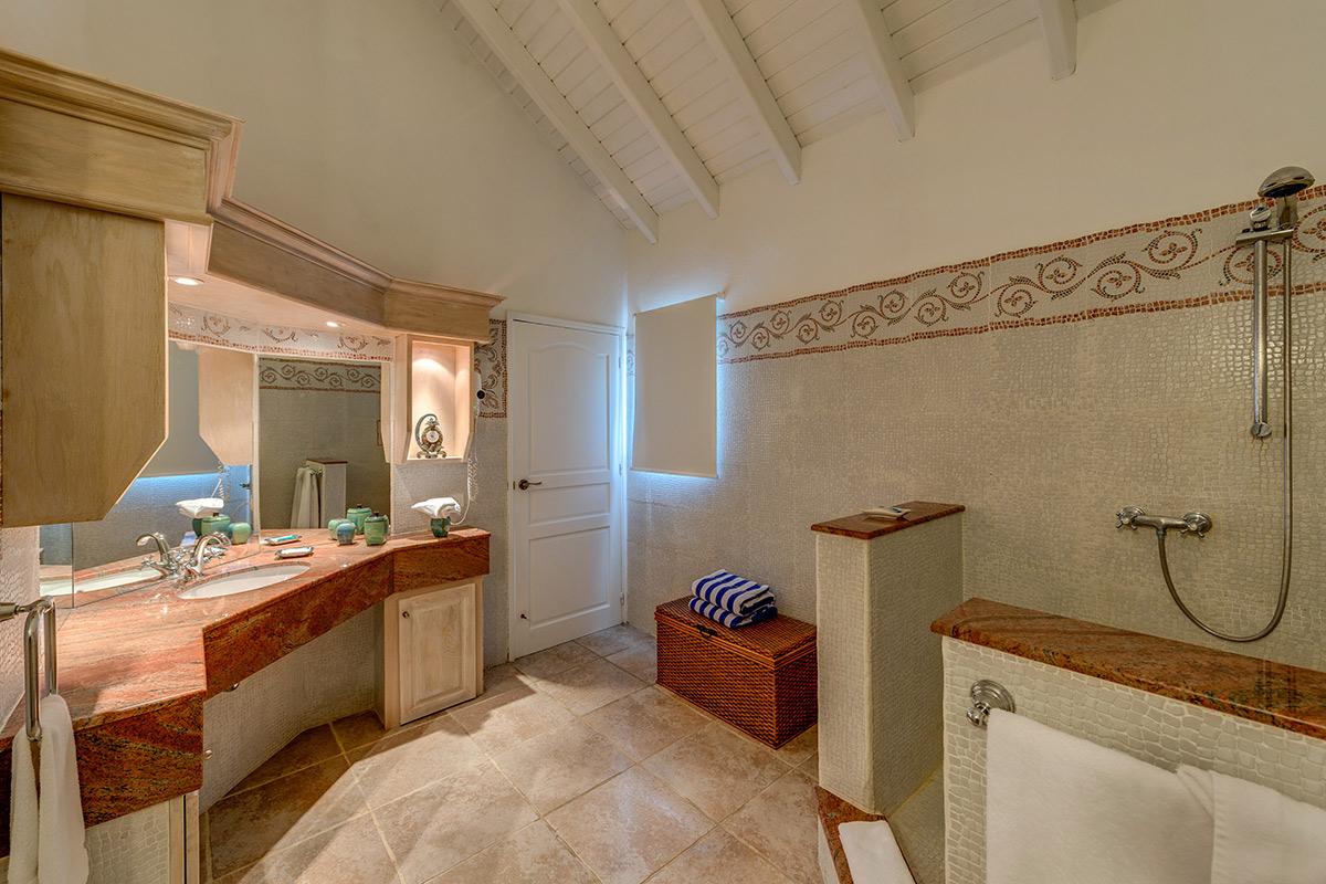 La Bastide combines a contemporary attitude with the exoticness of Moroccan design, perfectly suited to Caribbean lifestyle. Through the gates, you arrive in a private tropical paradise. Lush gardens and beautiful columned entry welcome you into a stylish villa with a breathtaking view. As your eye wanders through the cool interiors to the covered terrace, your eye draws you to the azure Caribbean Sea and brilliant blue sky. Between the interior and sea is a fabulous, very unique double pool that combines a large horizontal infinity pool set with a beautiful oversized vertical lap pool that almost disappears into the sea. Surrounding this oasis is a glorious garden filled with palms, tropical shrubs and flowers.