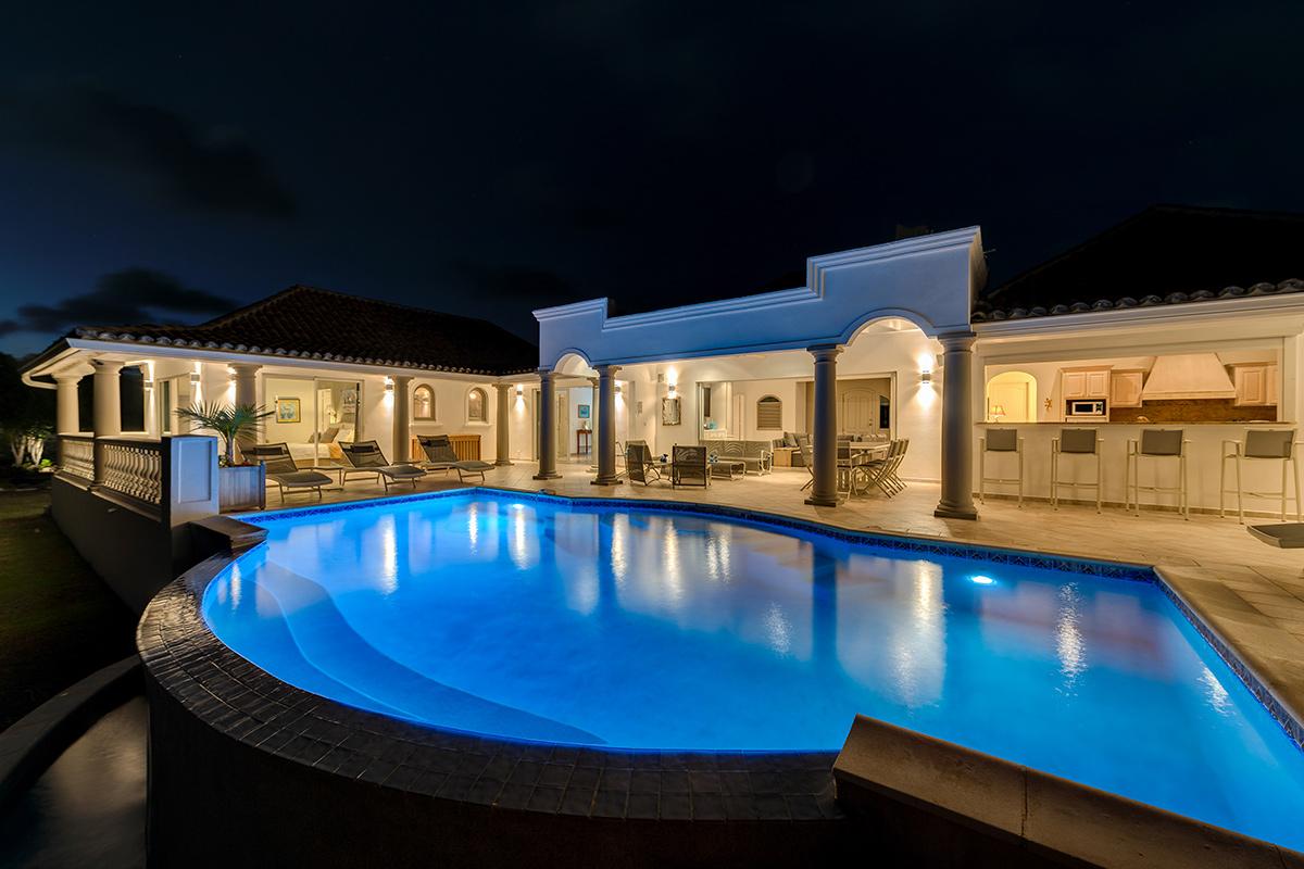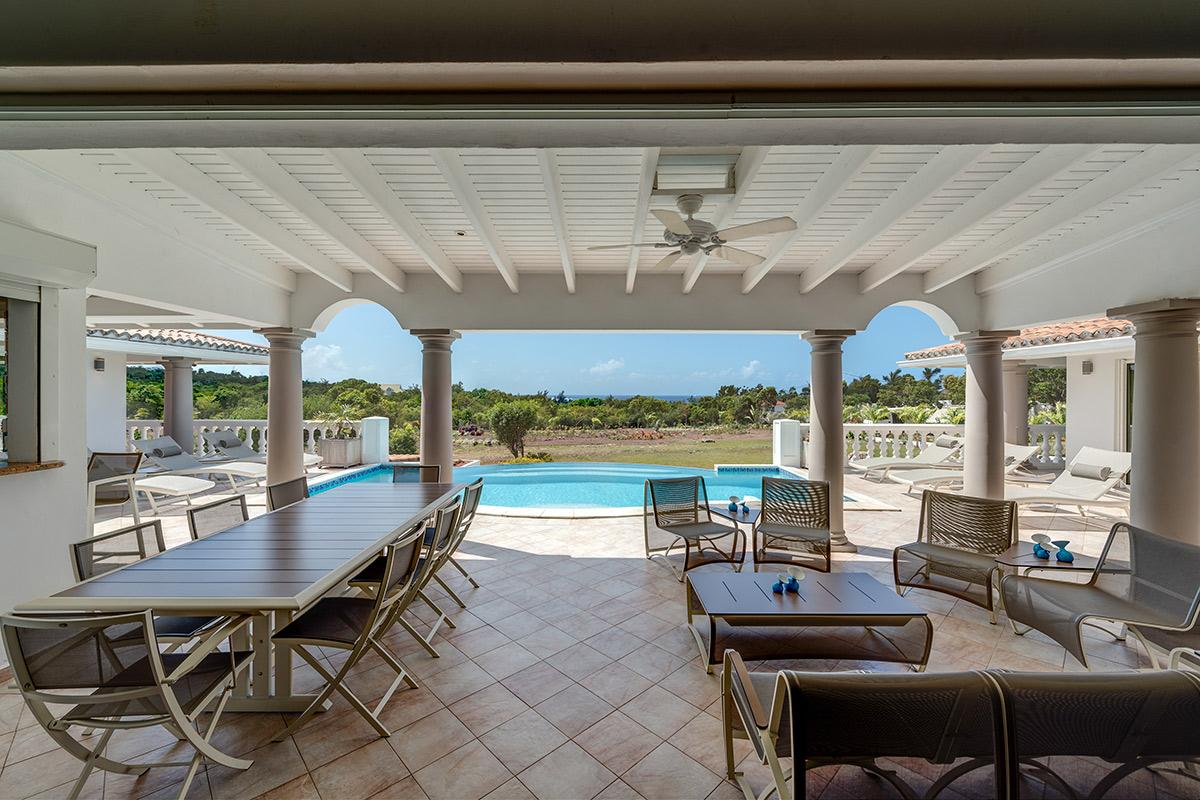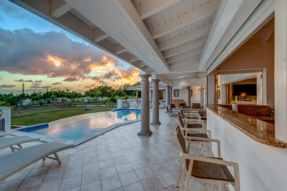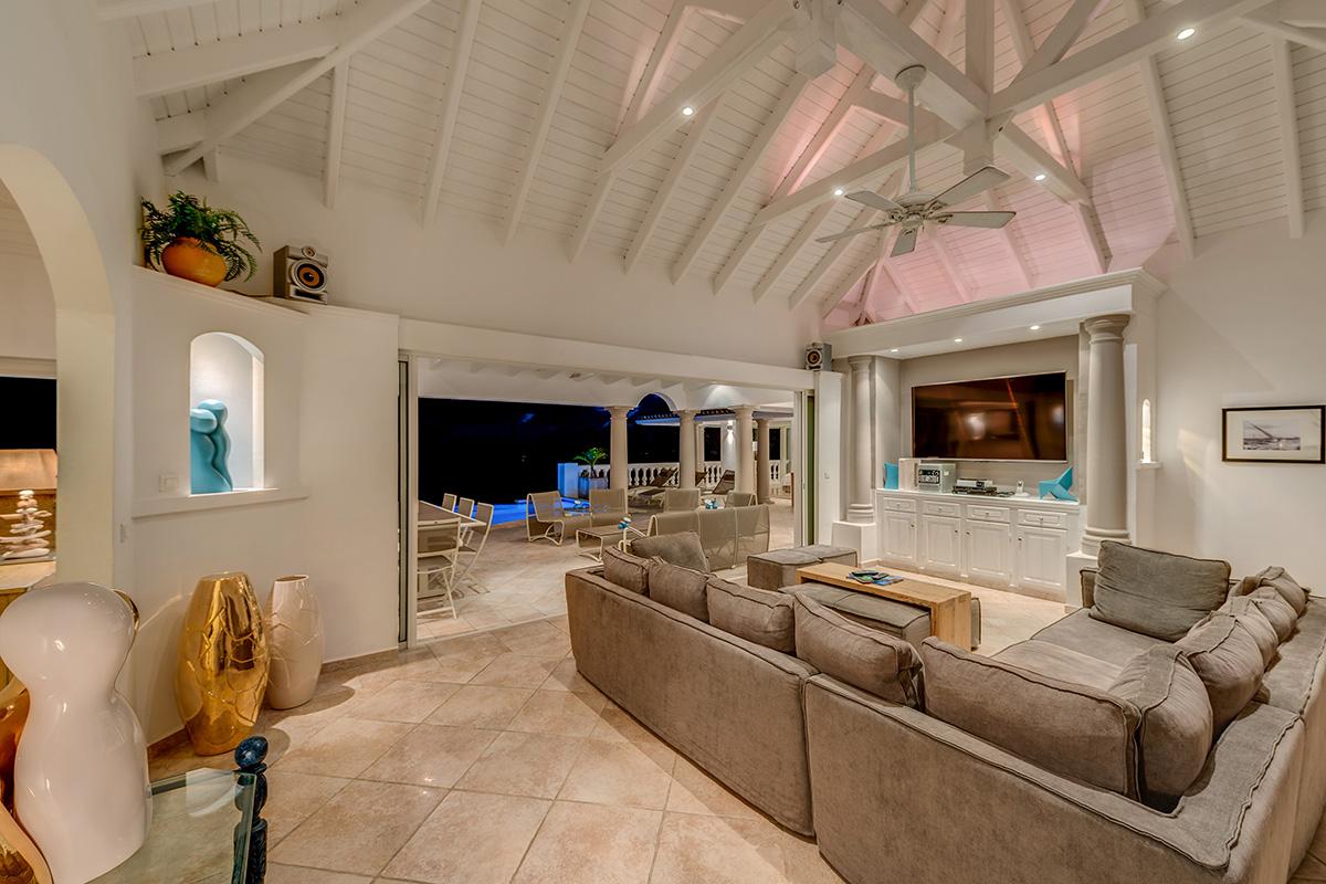 La Bastide combines a contemporary attitude with the exoticness of Moroccan design, perfectly suited to Caribbean lifestyle. Through the gates, you arrive in a private tropical paradise. Lush gardens and beautiful columned entry welcome you into a stylish villa with a breathtaking view. As your eye wanders through the cool interiors to the covered terrace, your eye draws you to the azure Caribbean Sea and brilliant blue sky. Between the interior and sea is a fabulous, very unique double pool that combines a large horizontal infinity pool set with a beautiful oversized vertical lap pool that almost disappears into the sea. Surrounding this oasis is a glorious garden filled with palms, tropical shrubs and flowers.