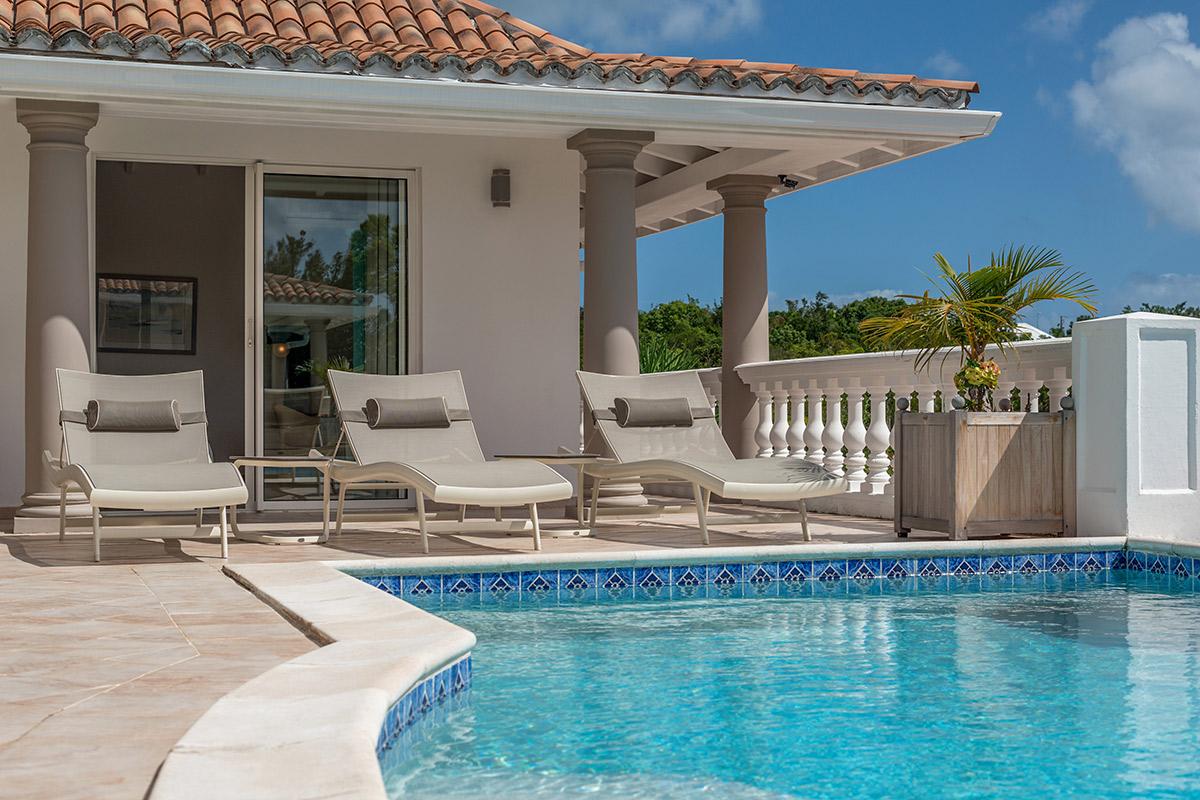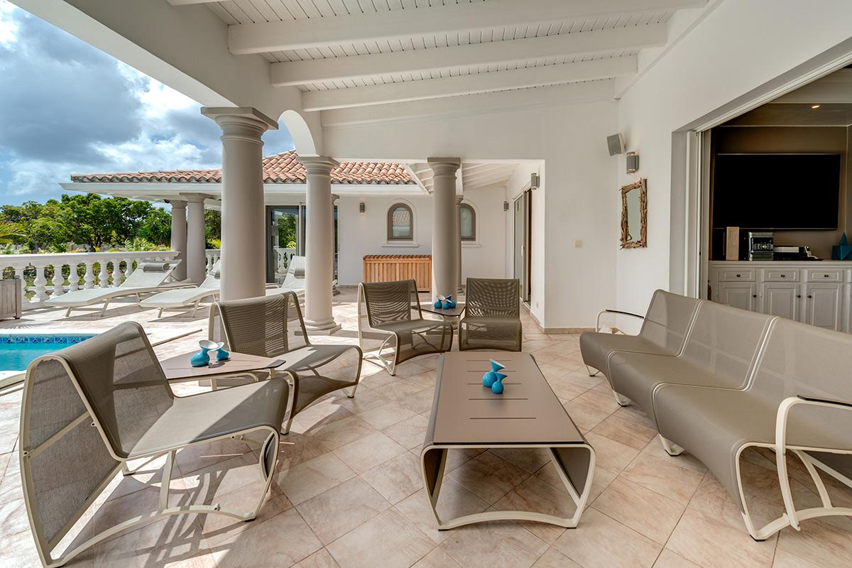You are close to amenities. Two minutes to Baie Nettle’s culinary stars Le Sand, Dreams and Mezza Luna. Wonderful gourmet food and wine stores are just a short drive in Cupecoy along with the Starz Casino and fine dining options Escape and Temptation. A short 15-minute drive and you are at the International airport or the nightlife of Maho. The French Capital, Marigot, is only 15 minutes from the villa where you can enjoy Duty Free shopping, boutiques, bakeries and the Creole Market.