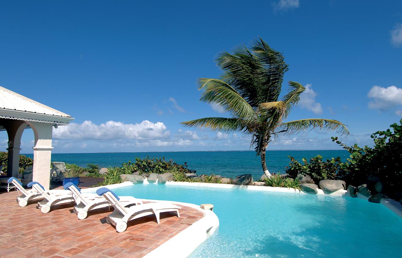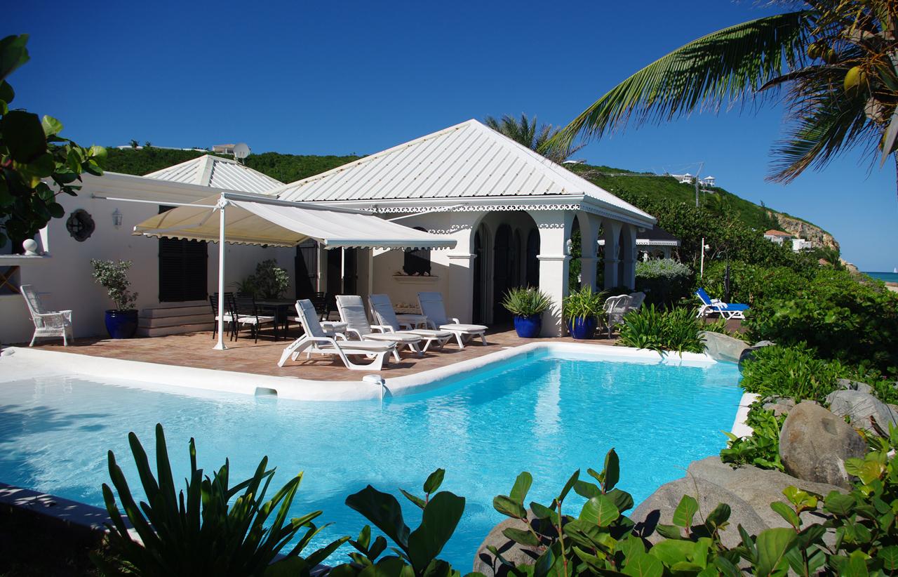 A spacious beachfront, hacienda-style villa directly on Bay Rouge, La Mission has 4 bedrooms each with king size bed, air-conditioned with adjoining bathroom.