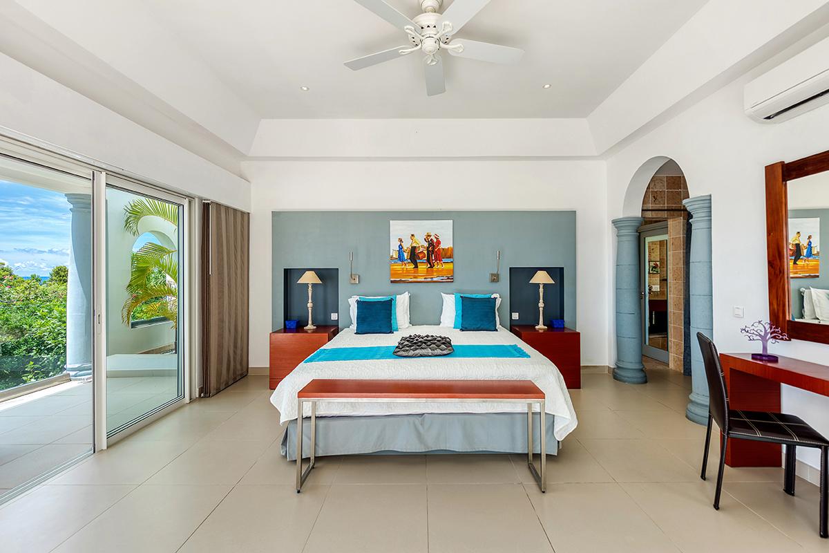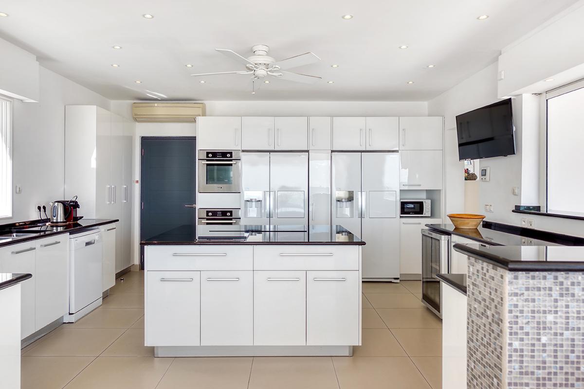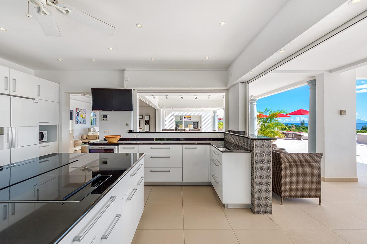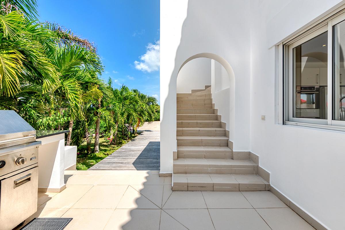 The interior of La Pergola consists of 4 air-conditioned spacious King sized suites, beautifully decorated, air-conditioned living room, a formal dining room and a huge kitchen. The kitchen is very well equipped with gourmet appliances and is perfectly prepared to handle a larger group for dining in house, or - even better - al fresco on the terrace or at the beautiful Gazebo with the great view of the Caribbean.