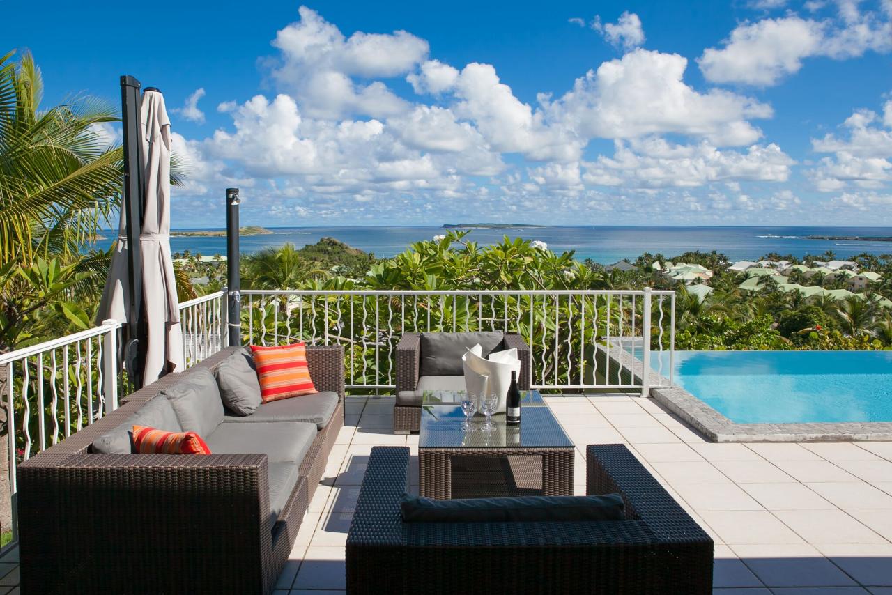 You will love this luxuriously appointed haven of peace for its magnificent 180º view over Orient Bay, certainly one of the most beautiful beaches on the island. From the overflowing swimming pool of this beautiful villa you can admire both its tropical garden and the bay.