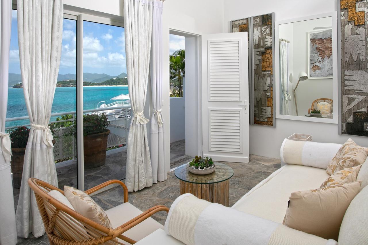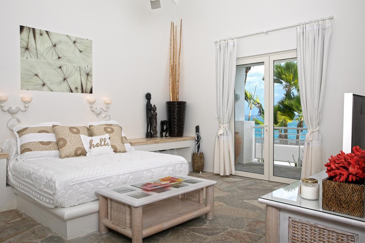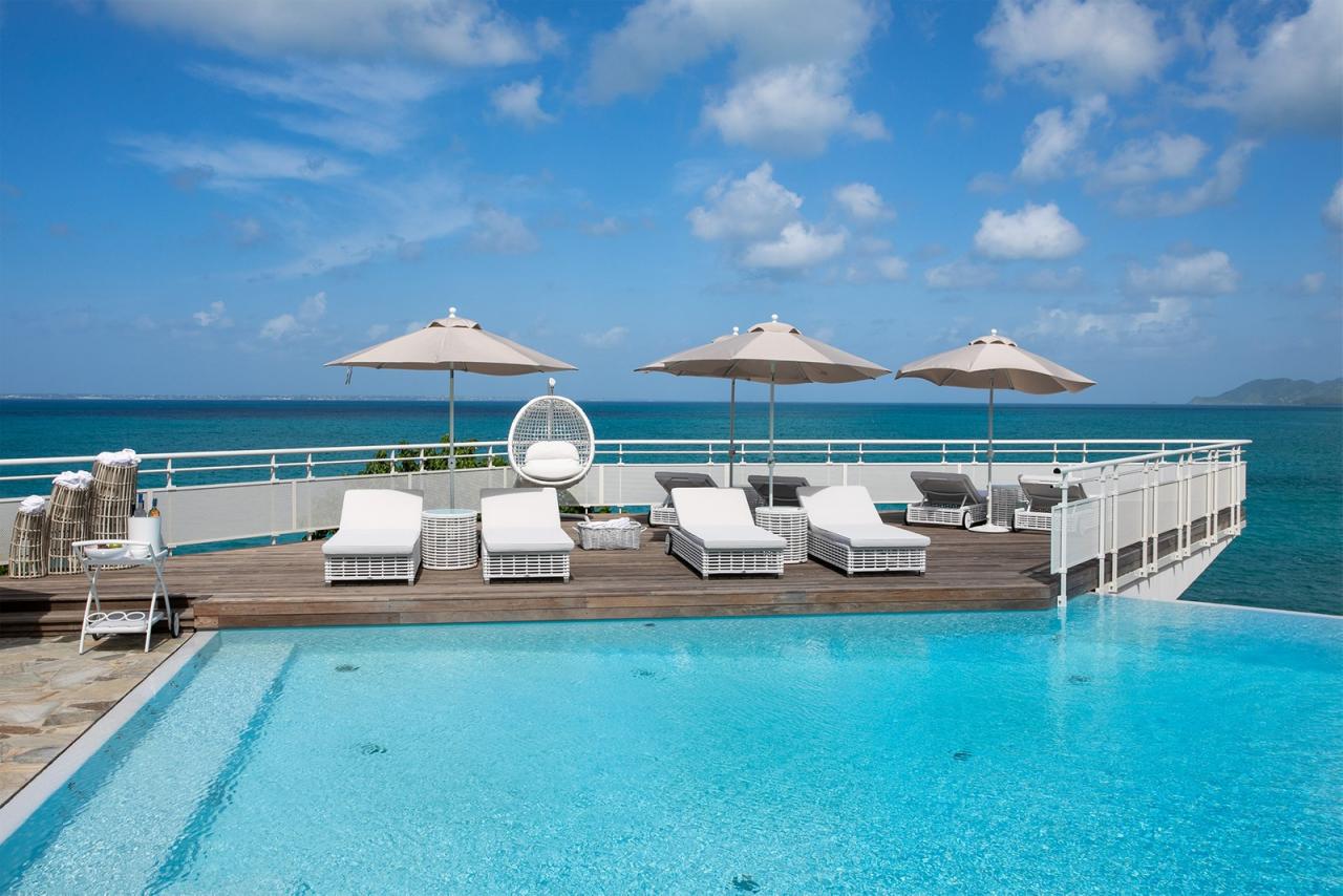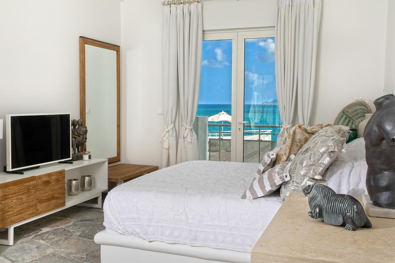 At the far end of Baie Rouge, one of St. Martin’s most sought after beaches, villa L'Oasis sits alongside the cliffs offering incredible sea views and luxurious surroundings. Built on three levels, following the incline of the cliff, this elegant and sophisticated beachfront home has six bedrooms, including 3 master suites and two beautiful pools, one at shore level and a second overflow pool on the main residential level.