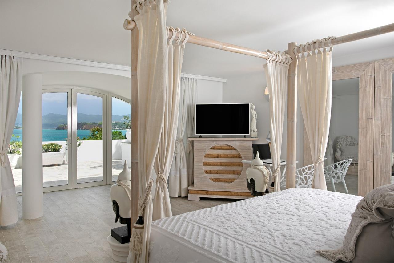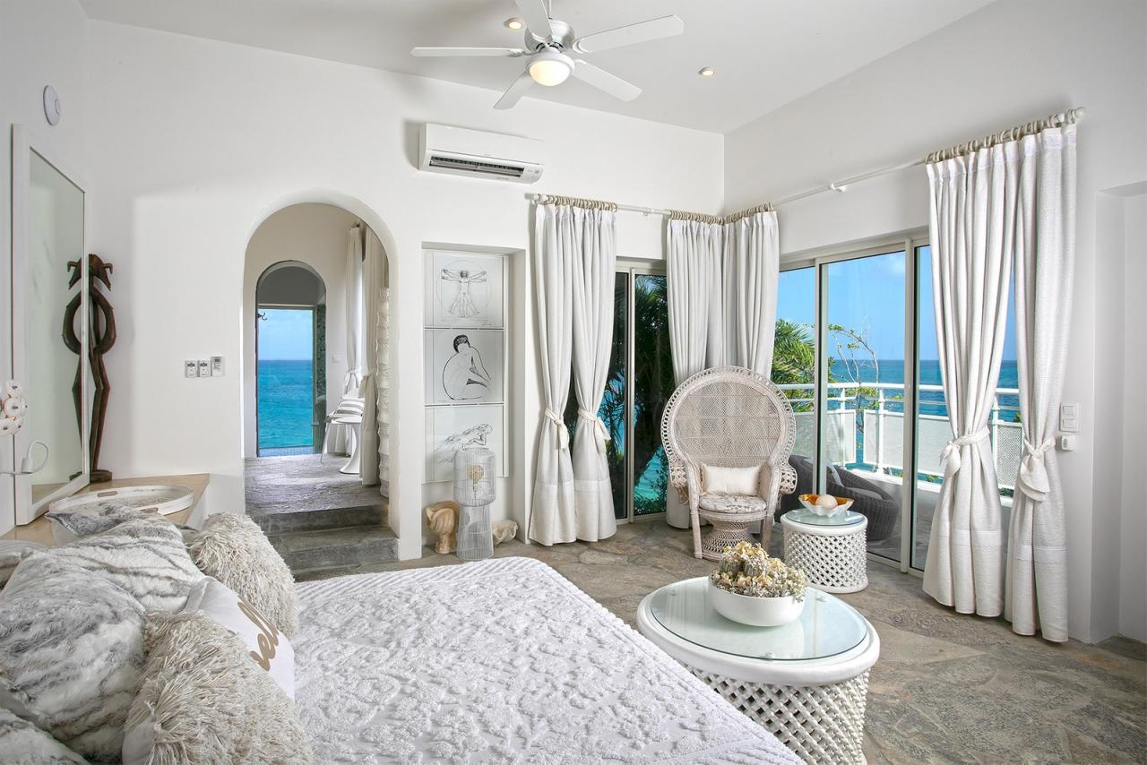 Of the six bedrooms, all have ocean views and en suite bathrooms, and three are master suites. Each of the six bedrooms is equipped with a king-size bed, ample closet space, a TV, a safe, and wifi.