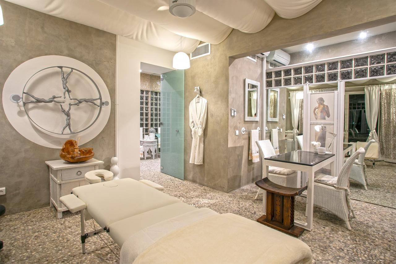 L'Oasis has even more amenities that include a luxurious spa with steam room, massage and manicure tables, a fitness room equipped with a treadmill, elliptical and free weights, and an outdoor hot-tub.