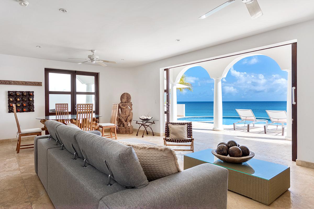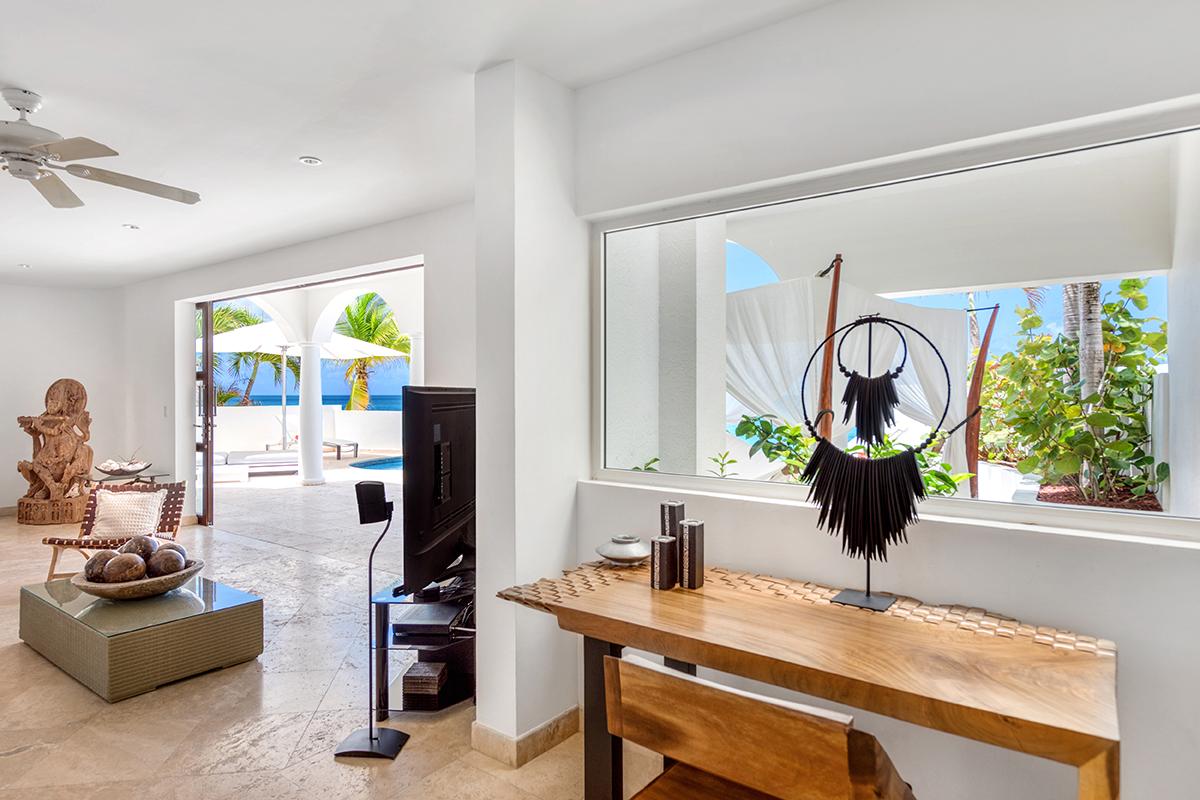 Mumbai is a fully air-conditioned astonishing beach/waterfront property located in Shore Pointe, a beautiful and elegant gated community sitting on Cupecoy Beach. This beautiful three bedroom villa is an unmatched hideaway for those seeking a combination of luxury and convenience; only 3 minutes drive separate you from leisure, dining and gaming yet a 24 hours surveillance provides for an unparalleled private experience. Can be rented as a 2 or 3 bedroom villa.