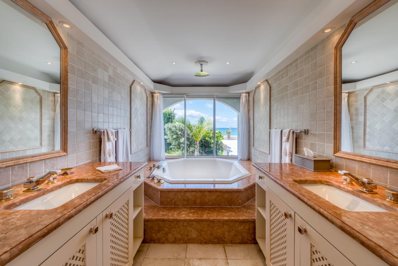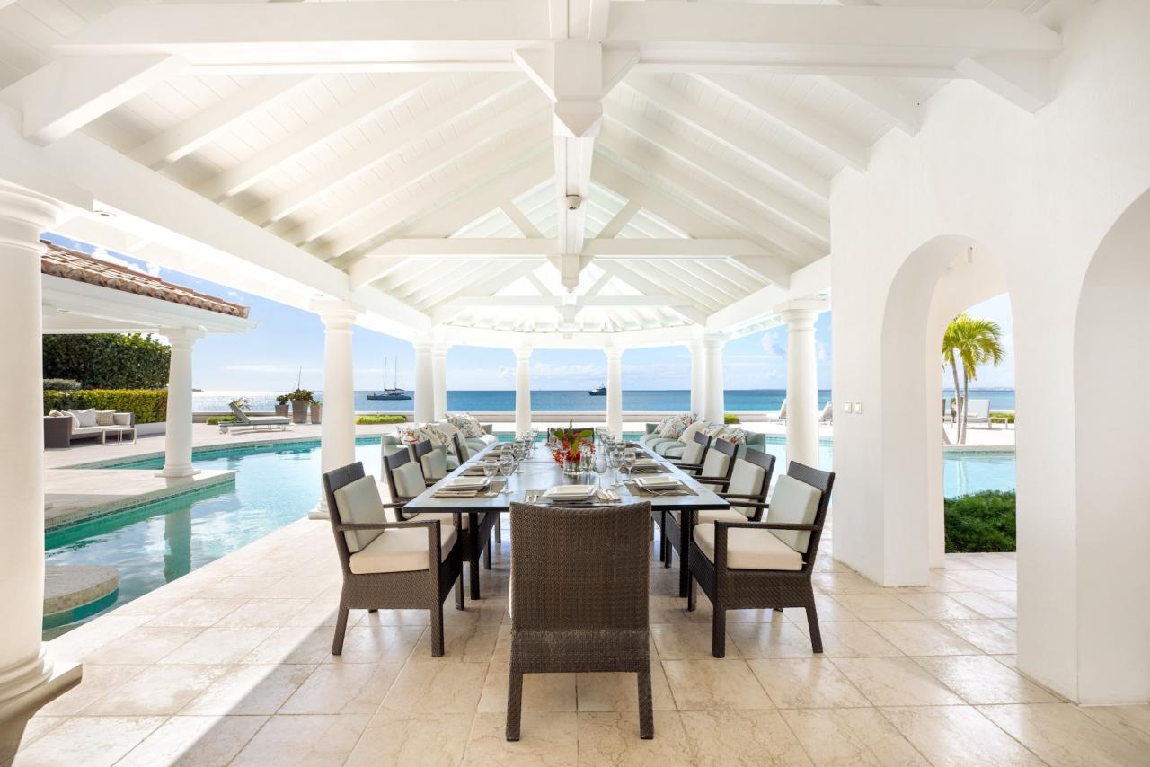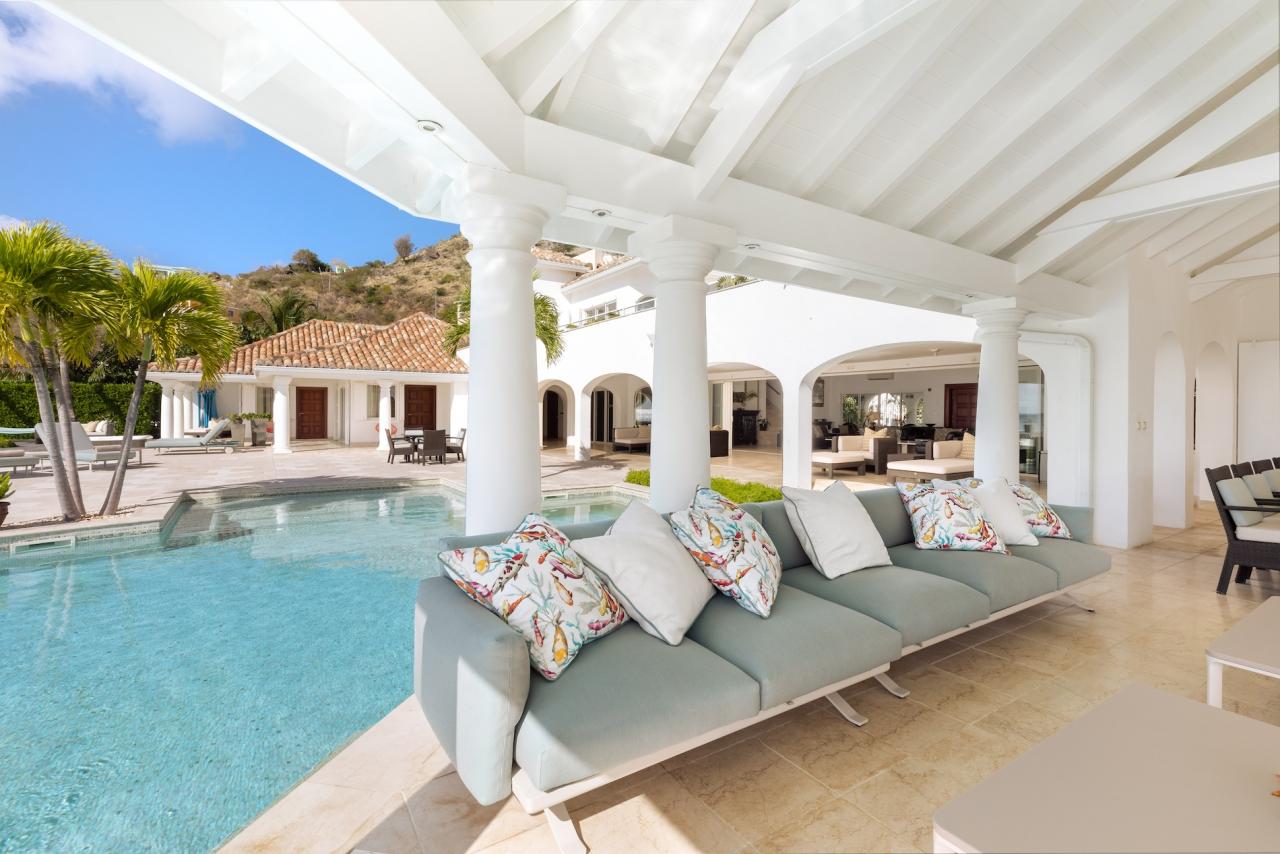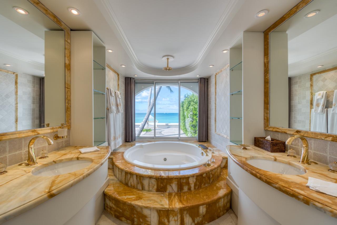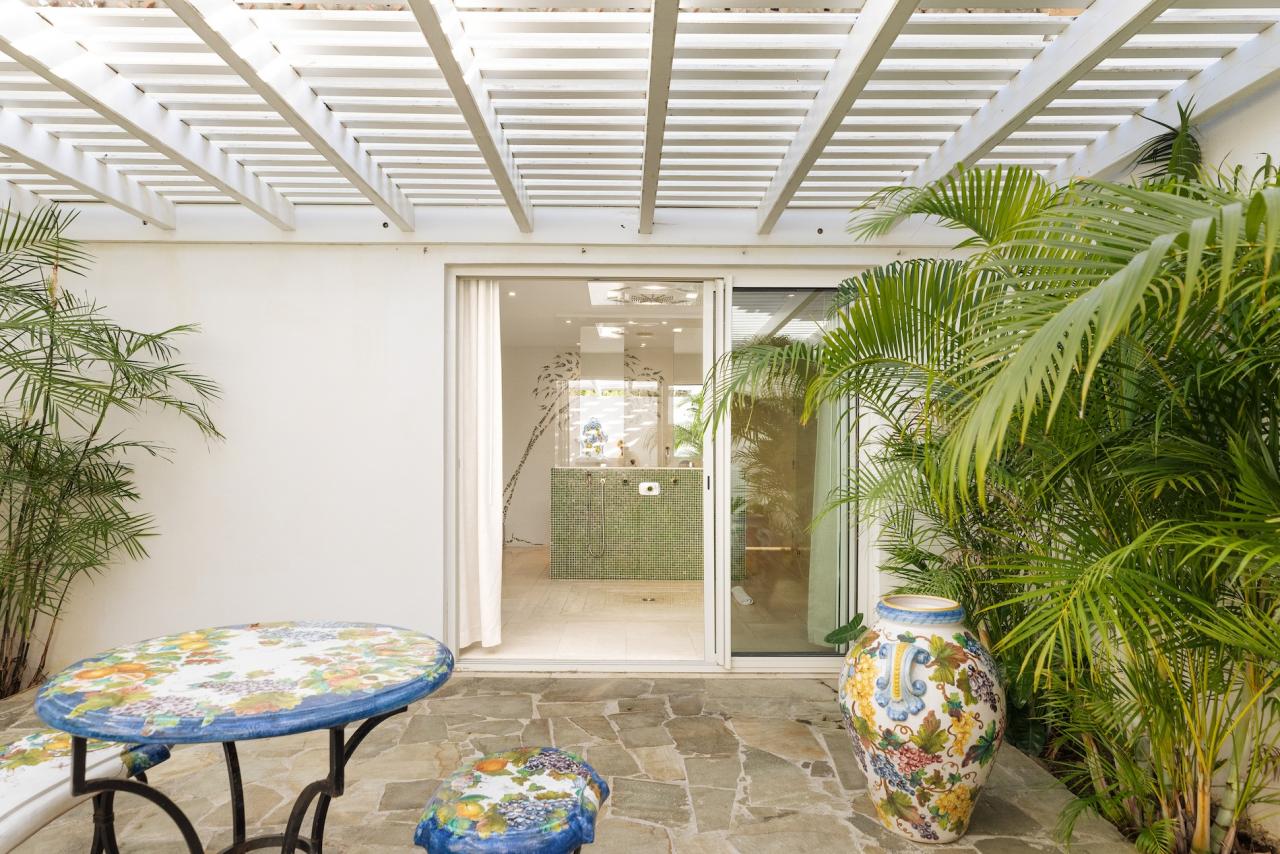 On a small private road at the far end of Grand Case is Petite Plage 4, an oasis of beauty and tranquility overlaid with an eclectic blend of contemporary and opulent style. The exotic entrance is lined with palms and tropical foliage and flanked by Moroccan arches and ironwork. The hand carved double door opens wide to the amazing view accented with palms and the pool. You are at the ocean’s edge - before you the Caribbean Sea, the tropical sky and Anguilla. Within your view is the curve of Grand Case Bay.
