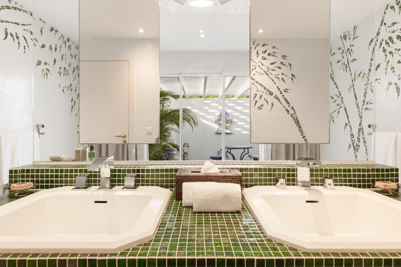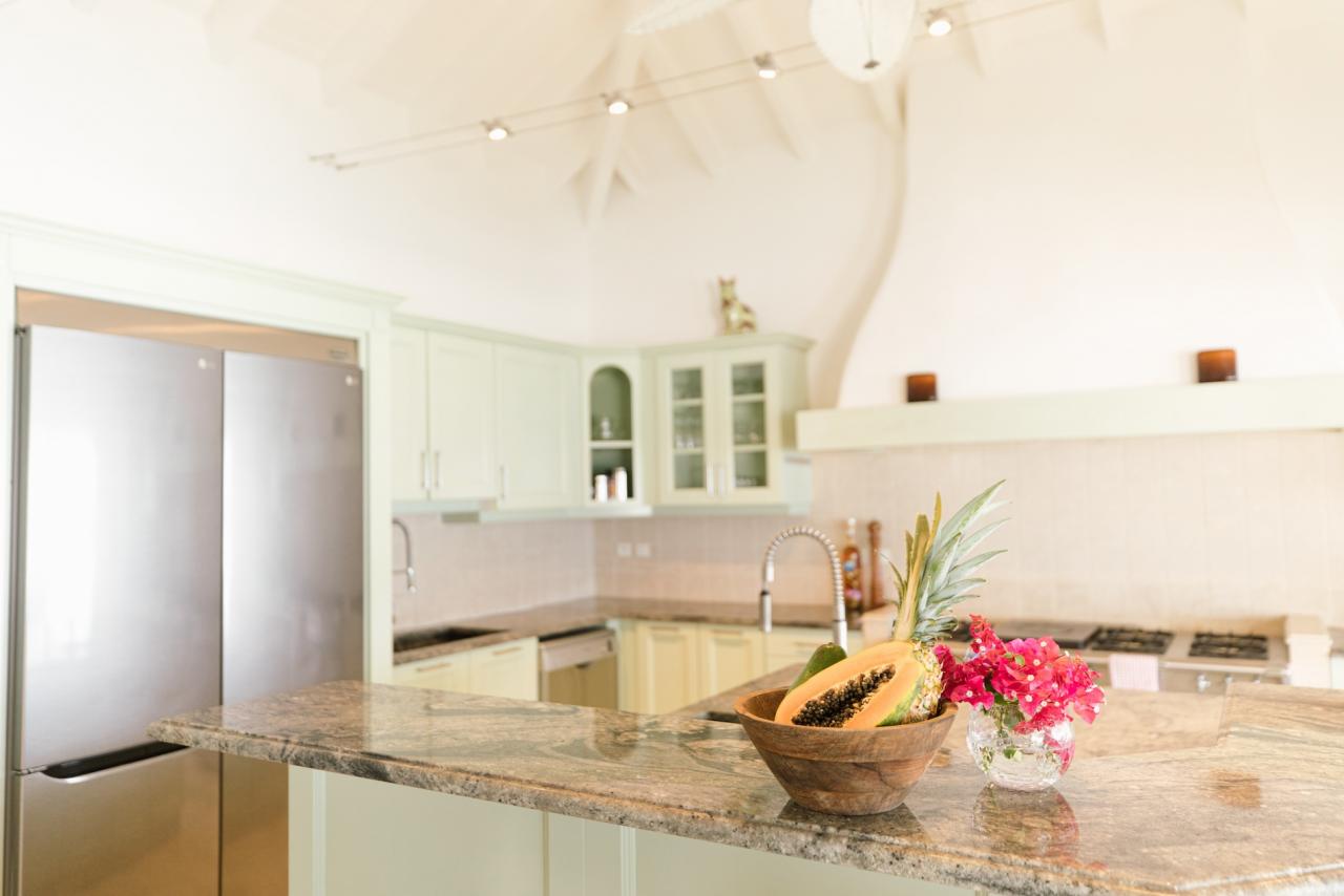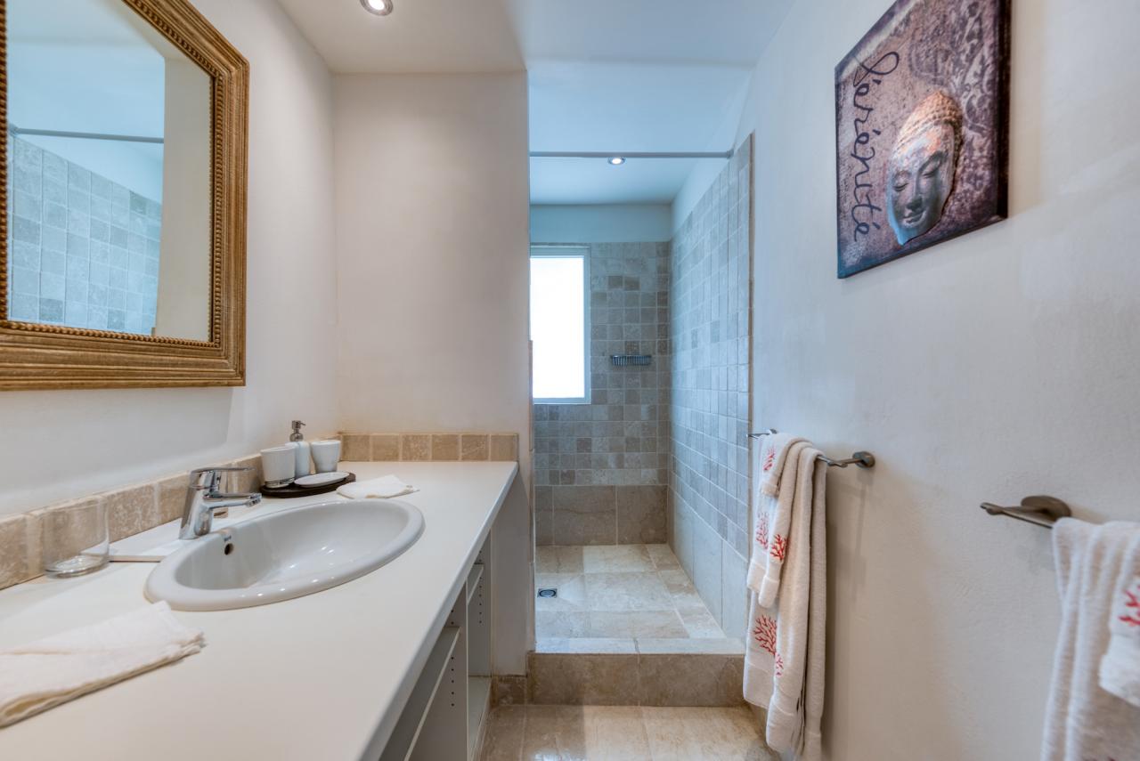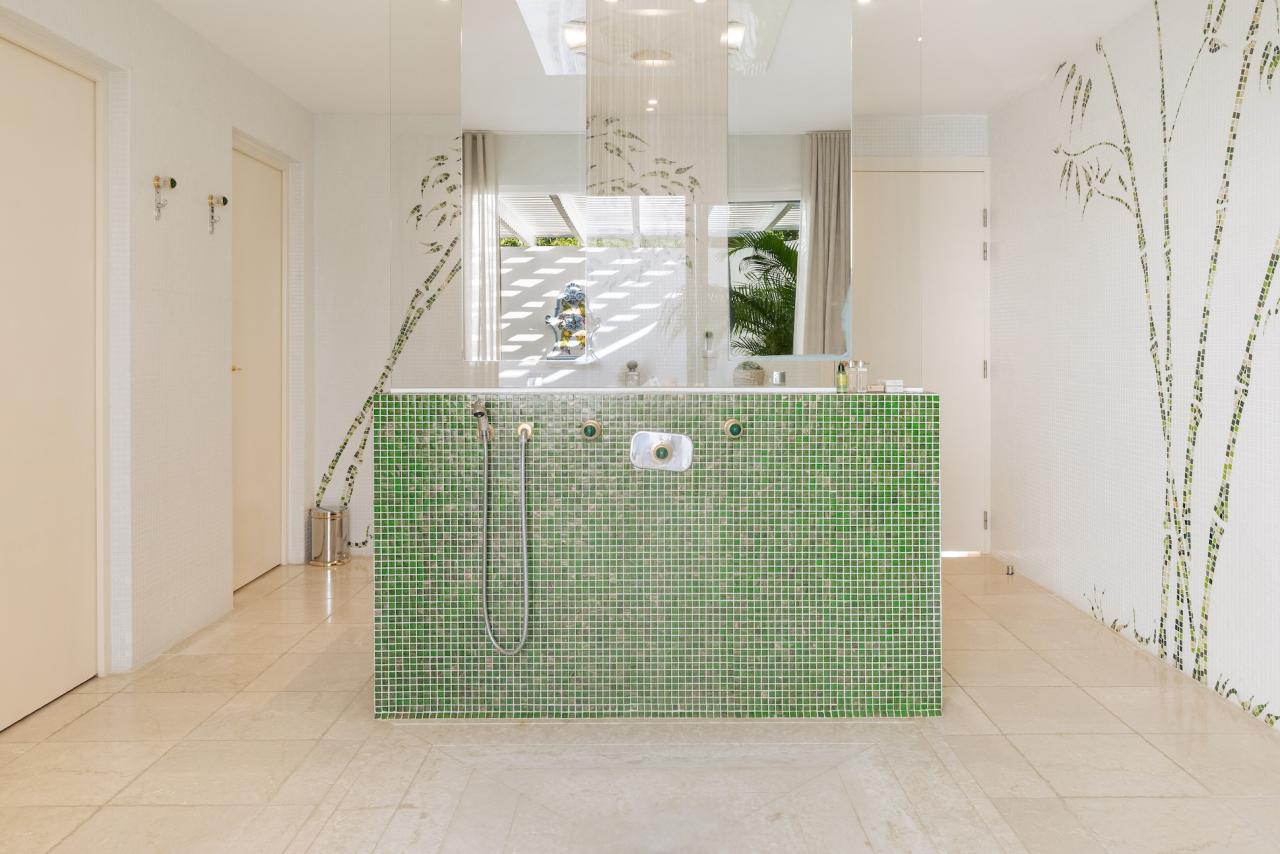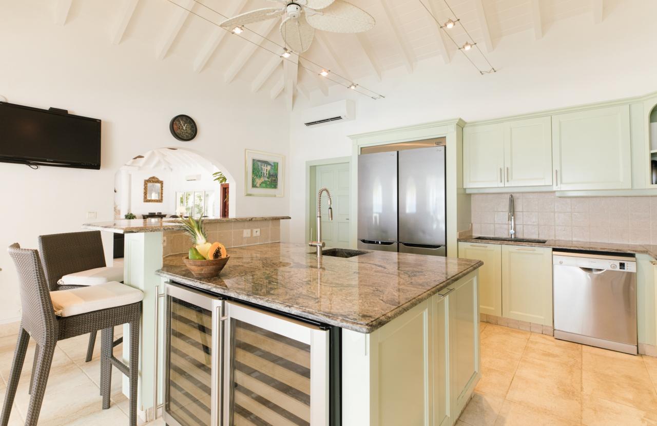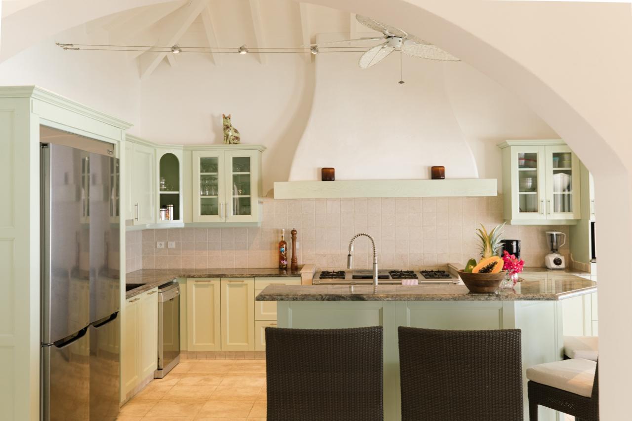 On a small private road at the far end of Grand Case is Petite Plage 4, an oasis of beauty and tranquility overlaid with an eclectic blend of contemporary and opulent style. The exotic entrance is lined with palms and tropical foliage and flanked by Moroccan arches and ironwork. The hand carved double door opens wide to the amazing view accented with palms and the pool. You are at the ocean’s edge - before you the Caribbean Sea, the tropical sky and Anguilla. Within your view is the curve of Grand Case Bay.