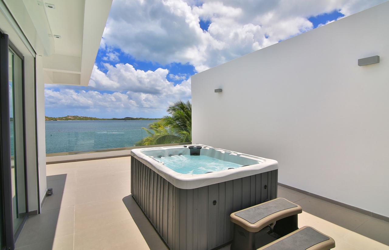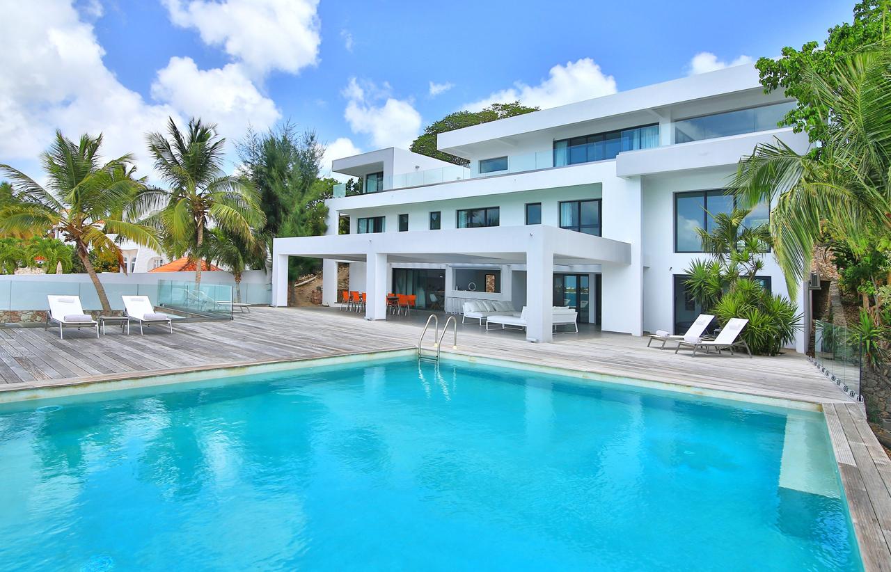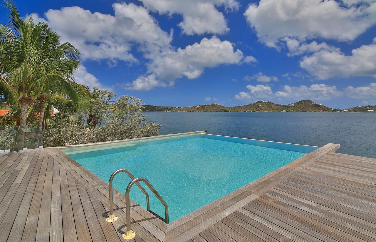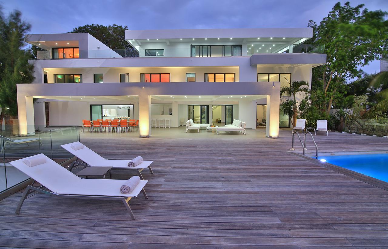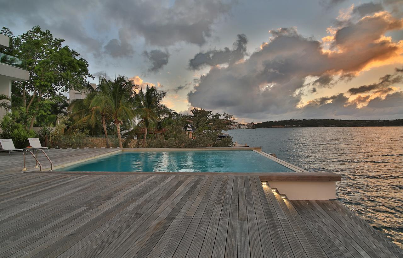 The Reef is a beautiful 5 bedroom contemporary villa, superbly positioned on the Simpson Bay Lagoon on the Dutch side of the island of St. Martin/St. Maarten. The villa has its own private boat dock and an amazing lounging terrace with very private exterior living areas and a beautiful waterfront, infinity edge, salt-water pool.