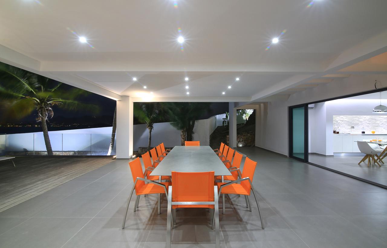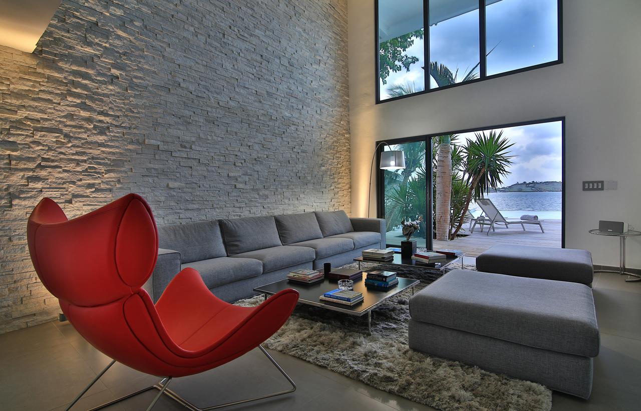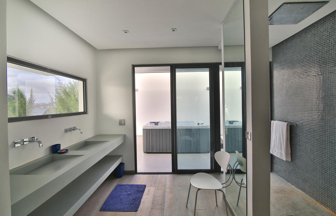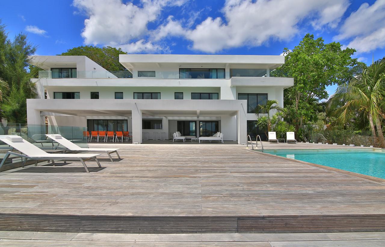 The Reef is a beautiful 5 bedroom contemporary villa, superbly positioned on the Simpson Bay Lagoon on the Dutch side of the island of St. Martin/St. Maarten. The villa has its own private boat dock and an amazing lounging terrace with very private exterior living areas and a beautiful waterfront, infinity edge, salt-water pool.
