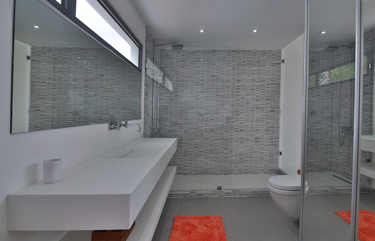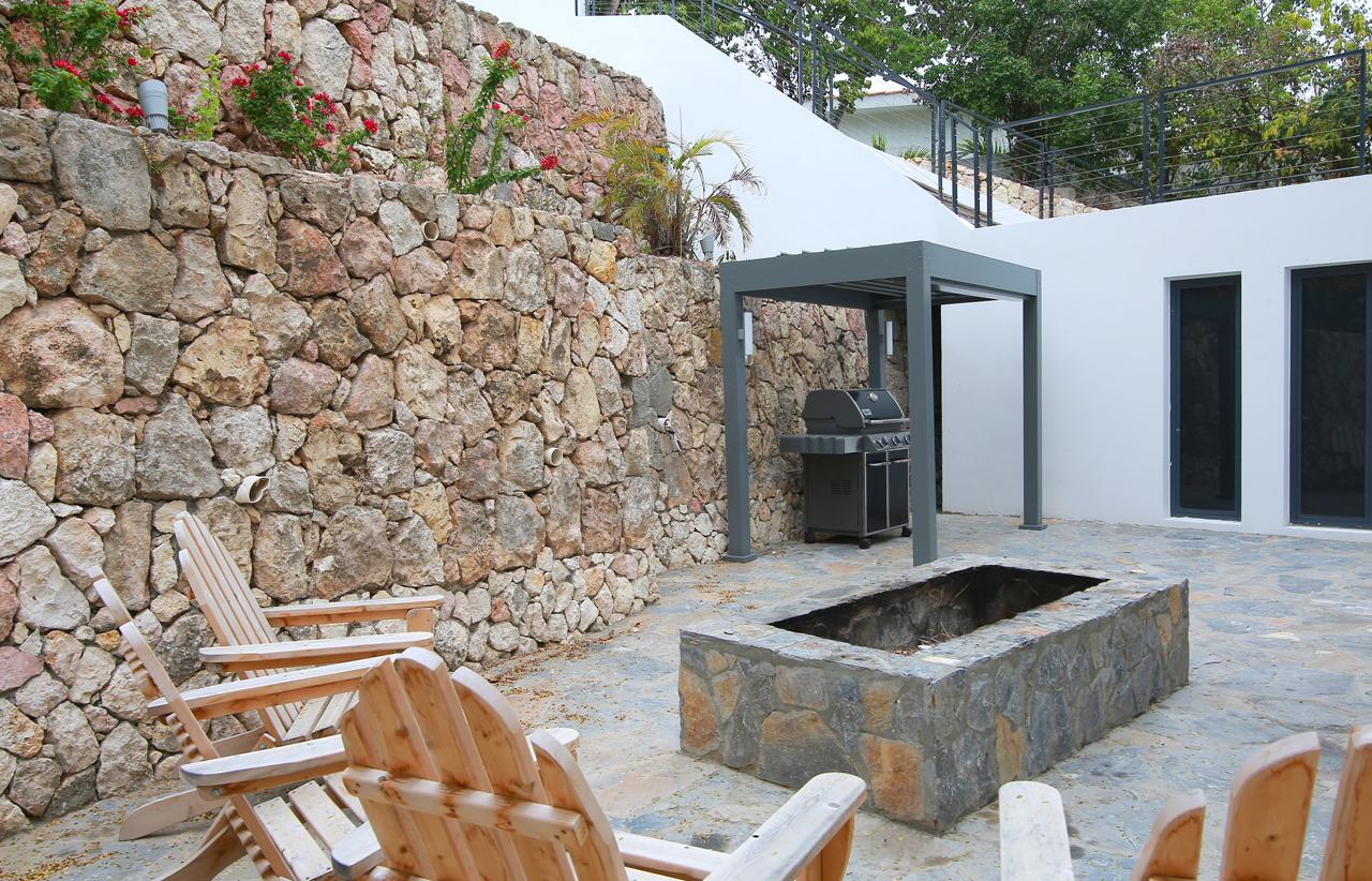 The 2nd floor houses 3 large bedroom suites with king size beds and en-suite baths and on the top floor resides the master suite with king size bed, walk-in closet and adjoining bathroom. There is also a large covered terrace with outside living area and an open-sky terrace with lounge chairs and a 5 seat jacuzzi. The fifth bedroom is located in a separate studio apartment with its own private entrance, en-suite bath and a private terrace.