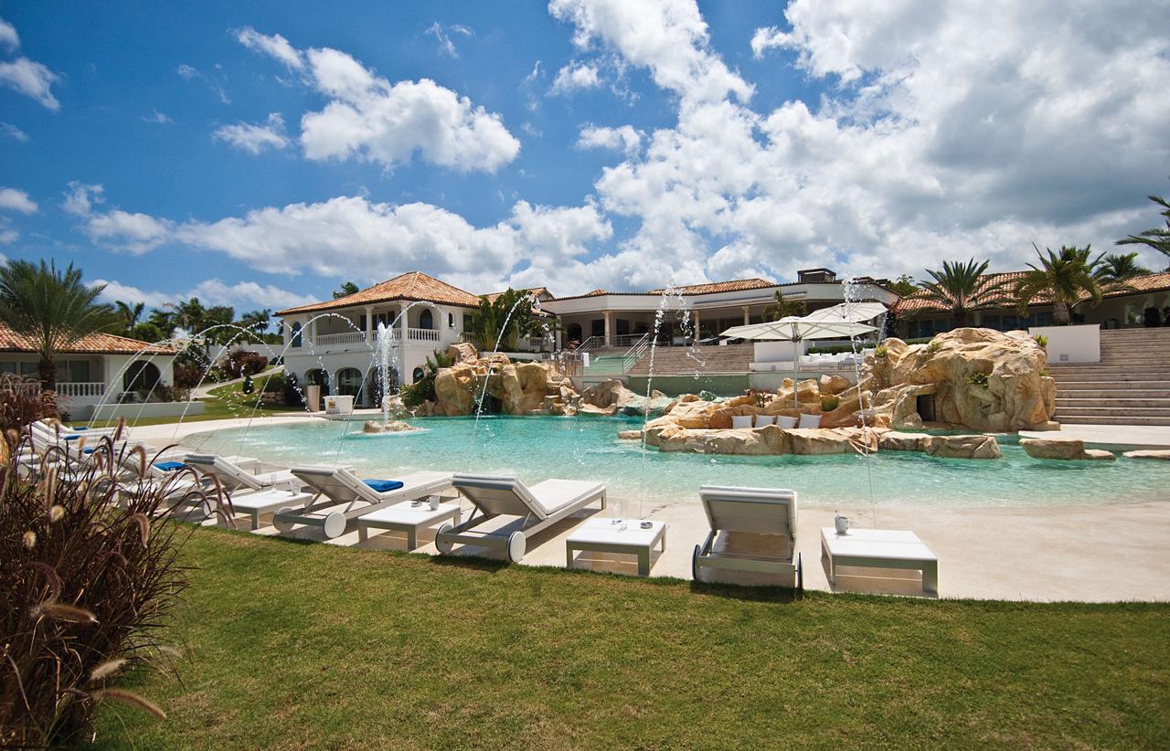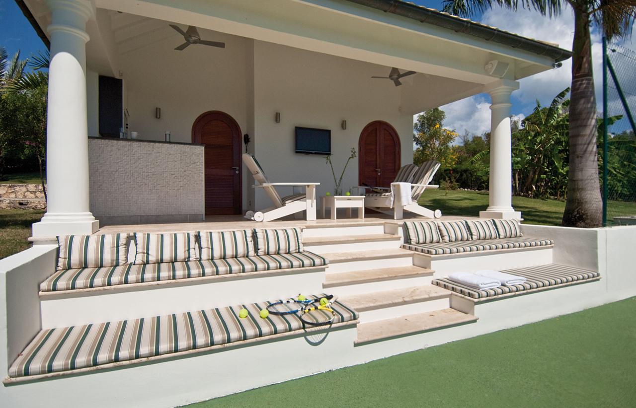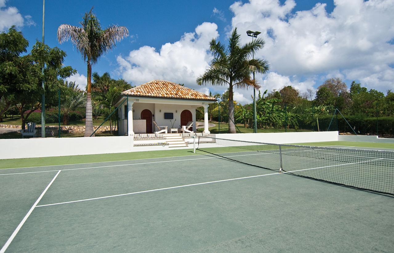 Private accommodations at Sandyline include 6 master suites with master bathrooms and 1 further bedroom with ensuite bathroom. The impressive exteriors are perfect for entertaining with 2 heated pools, sun deck with loungers and parasols, pool gazebo/bar, water slide, pool toys, island sundeck, infinity Jacuzzi and shaded seating under the air conditioned covered terrace. Additional highlights include the very well equipped gym, floodlit petanque and tennis pavilion with a cushioned all weather court providing the sporting entertainment.