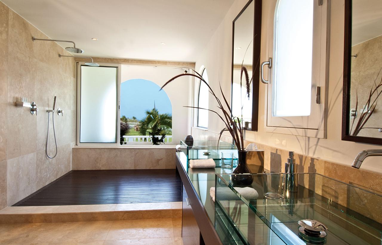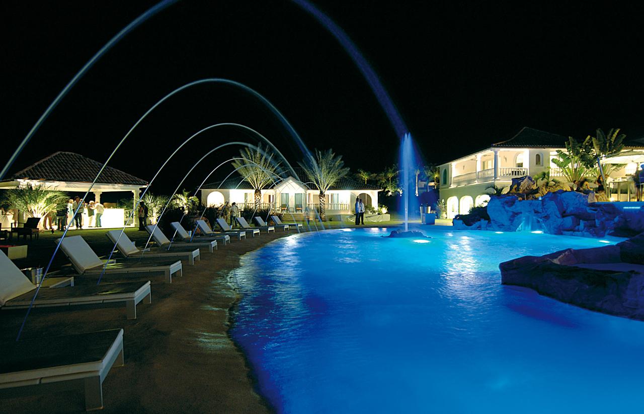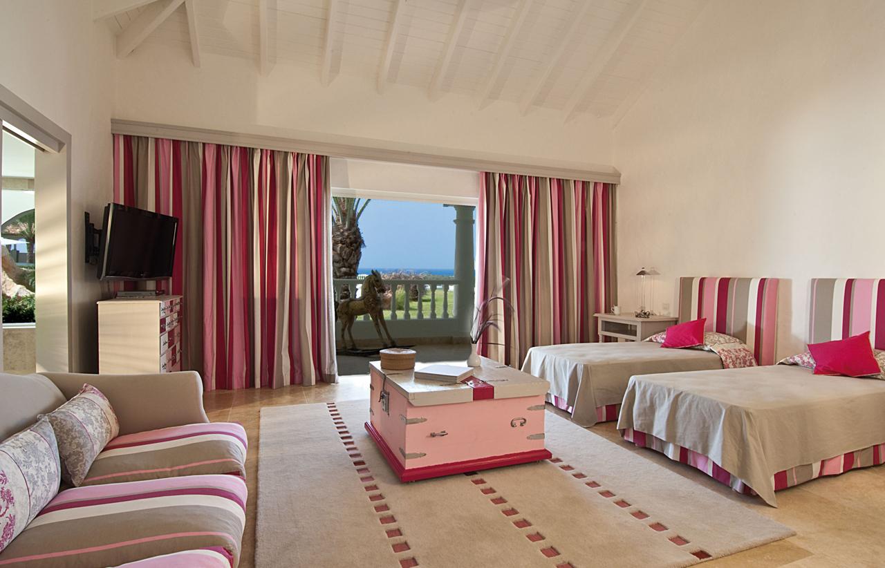 Private accommodations at Sandyline include 6 master suites with master bathrooms and 1 further bedroom with ensuite bathroom. The impressive exteriors are perfect for entertaining with 2 heated pools, sun deck with loungers and parasols, pool gazebo/bar, water slide, pool toys, island sundeck, infinity Jacuzzi and shaded seating under the air conditioned covered terrace. Additional highlights include the very well equipped gym, floodlit petanque and tennis pavilion with a cushioned all weather court providing the sporting entertainment.