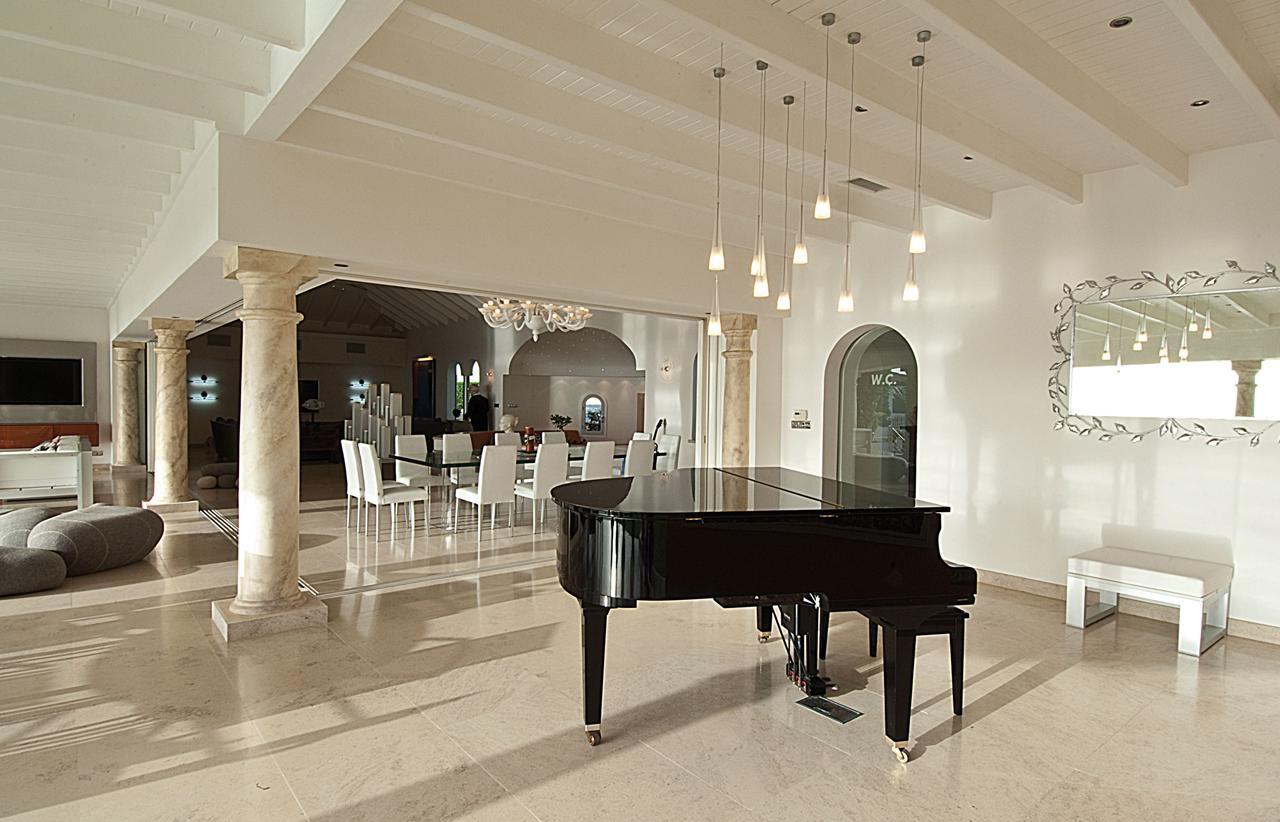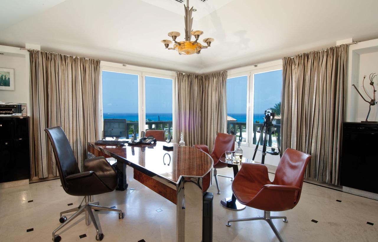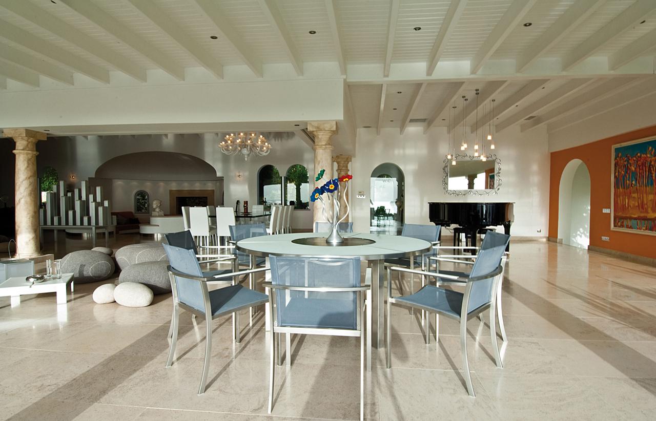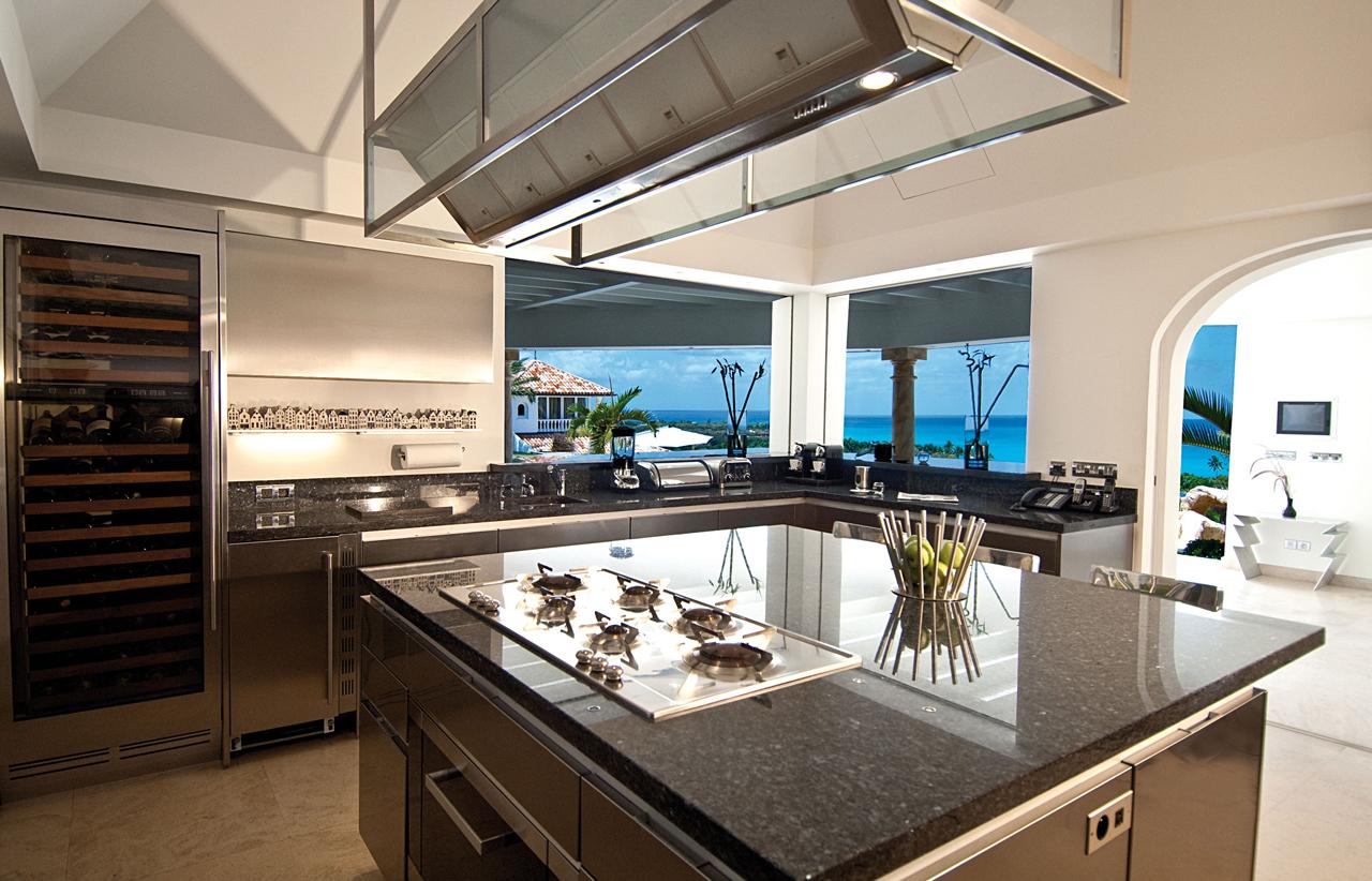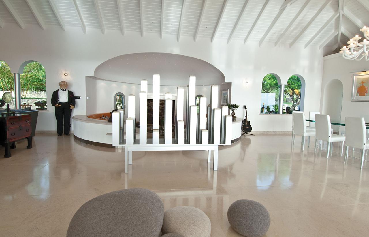 An entrance hall with a tropical reef aquarium leads through to the expansive living areas and pool terraces with open views west to the ocean. The dining area is served by a fully equipped gourmet kitchen. The living room has extensive leather sofas offering comfortable viewing of the plasma TV and home cinema system.